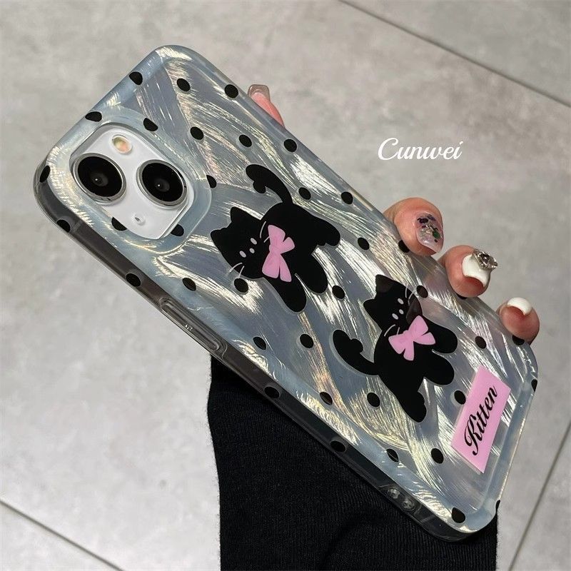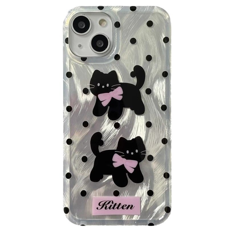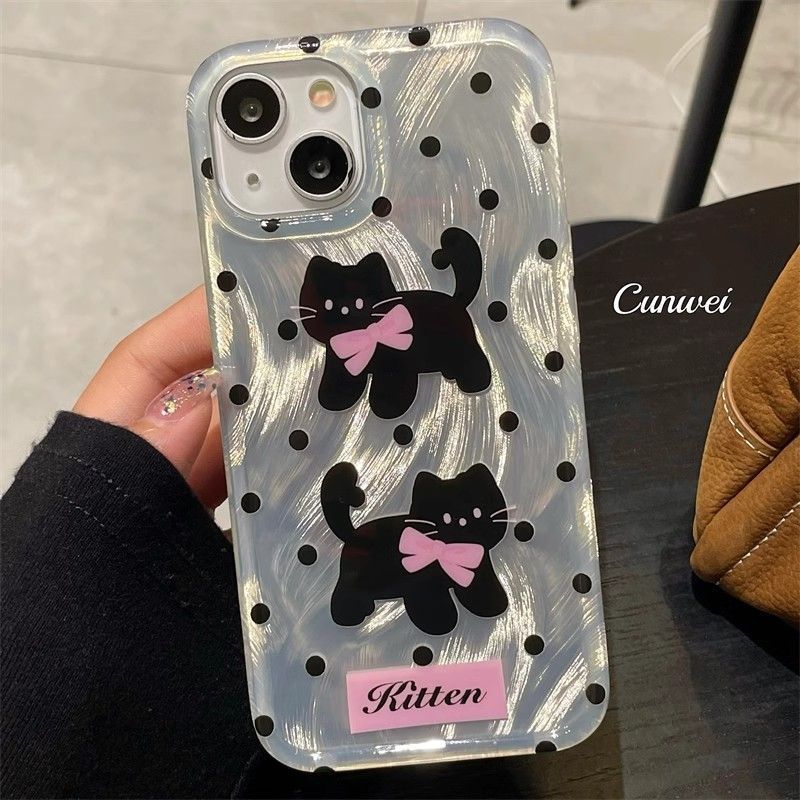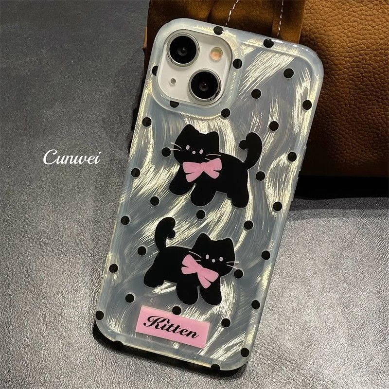 黑波点猫咪iPhone15/14手机壳13/12苹果xs/max羽纱xr/7/8潮6/se女