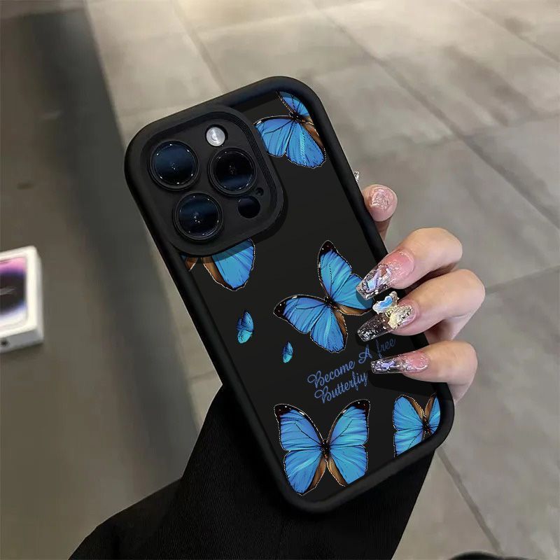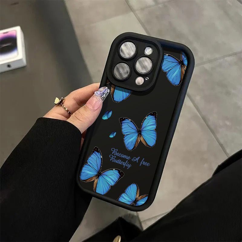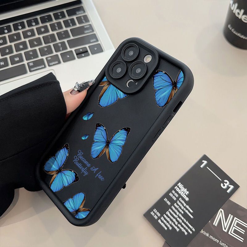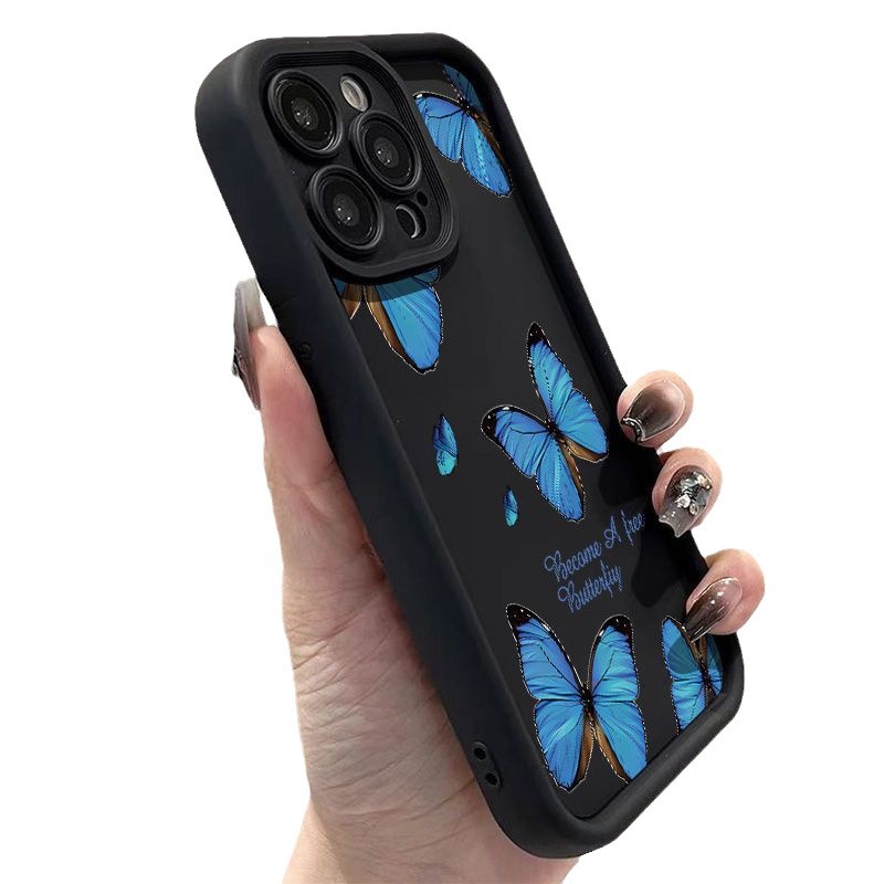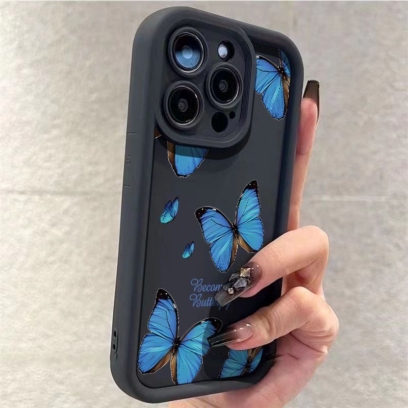 满屏蓝色蝴蝶15Plus苹果14手机壳iPhone131211promax卡通xr全包xs