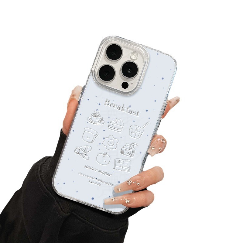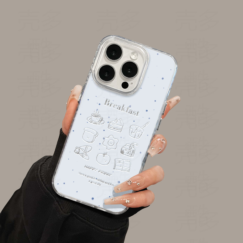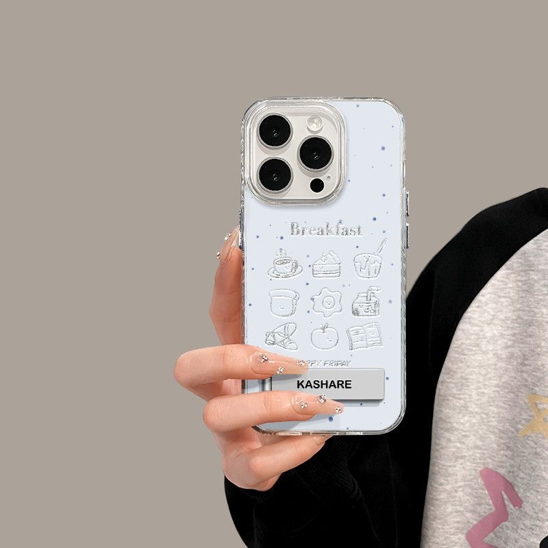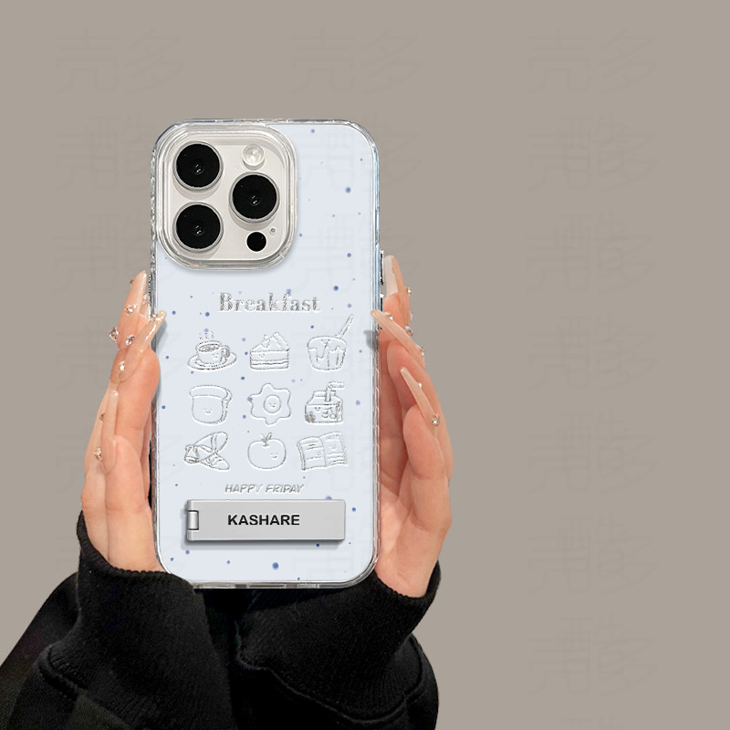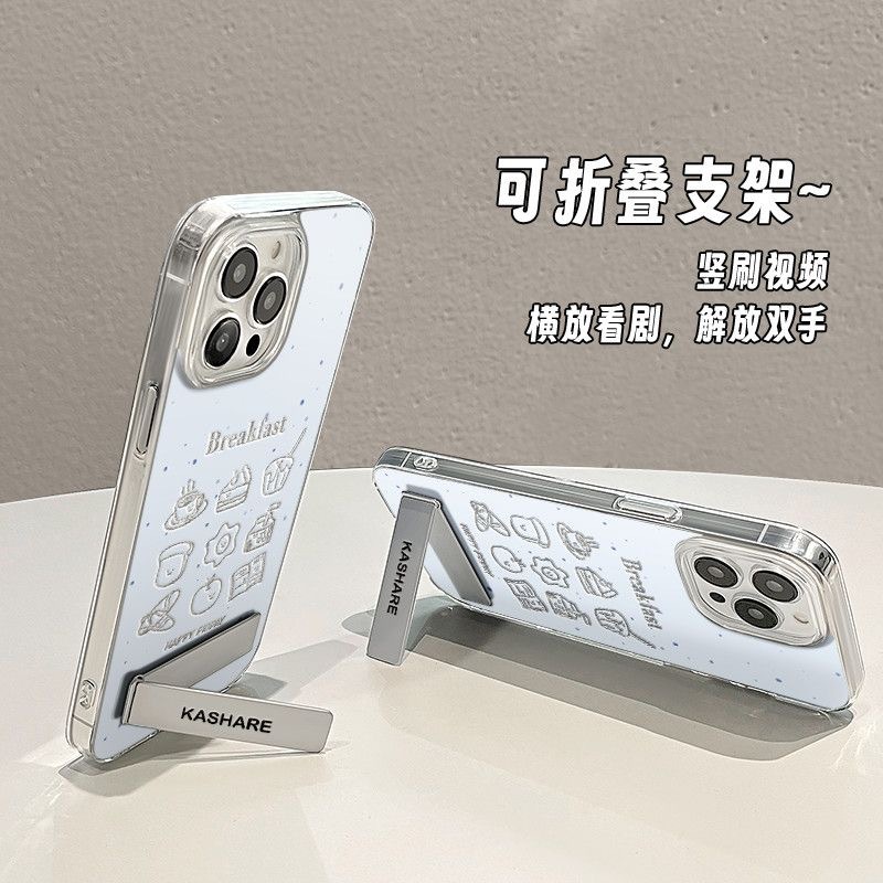 食物线条适用苹果15PROMAX手机壳iPhone14简约13带支架12硬壳大孔