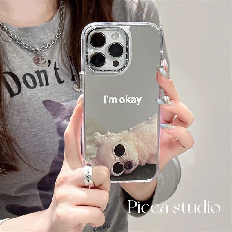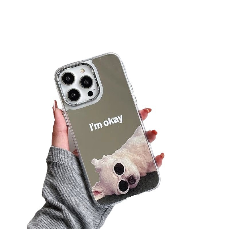 墨镜狗狗苹果15手机壳iPhone14镜面13promax电镀12/xs镜子xr/78p