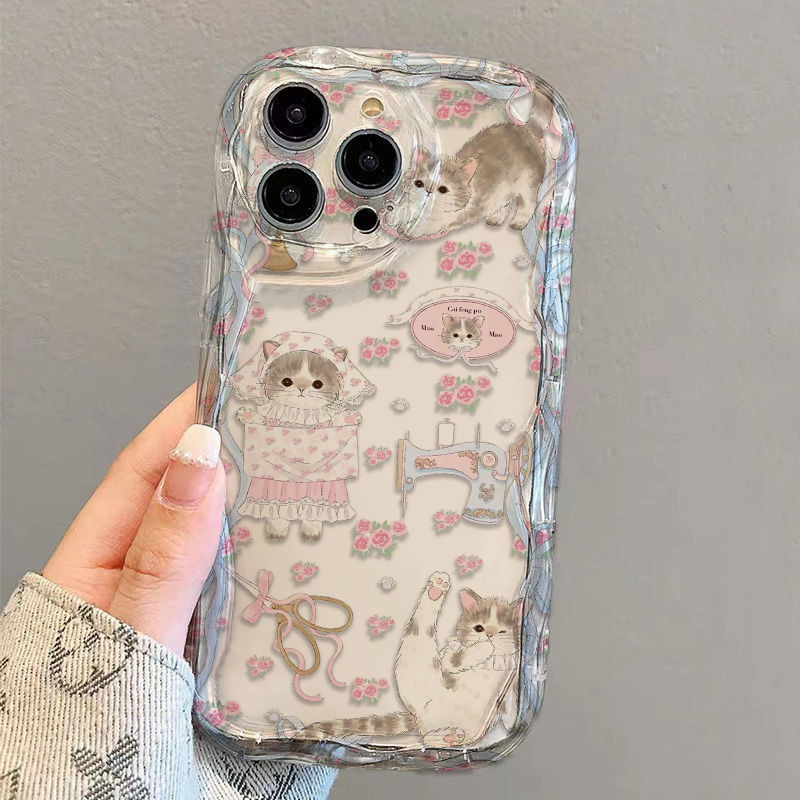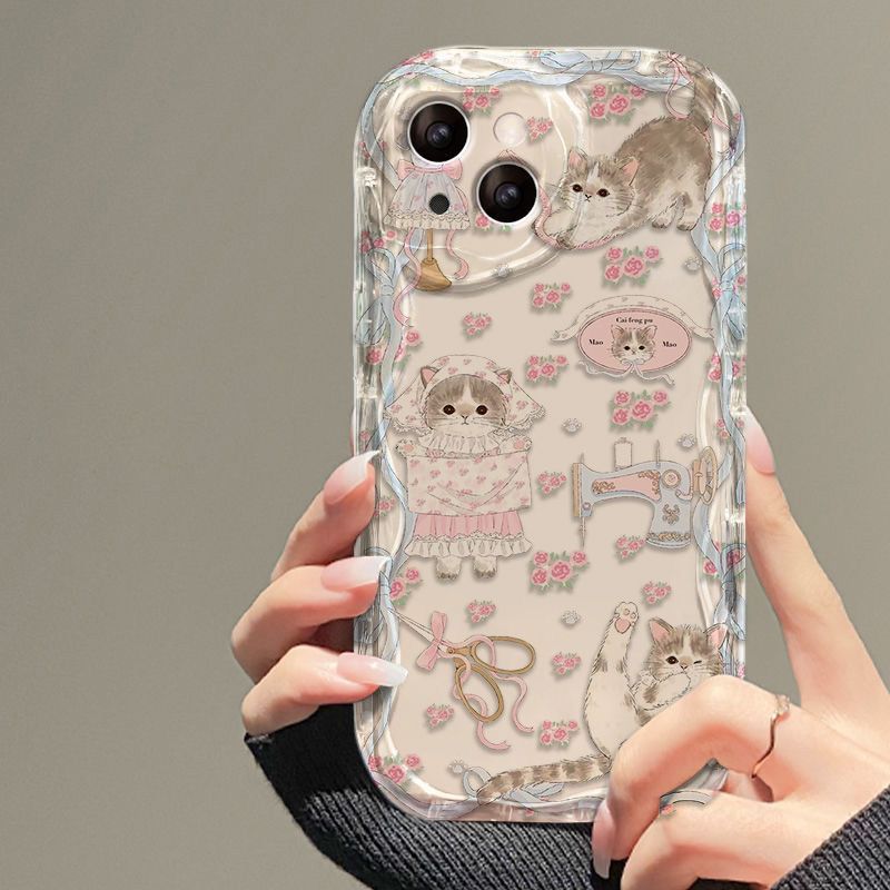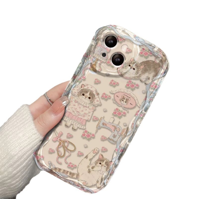 裁缝小猫咪苹果15Pro手机壳iPhone14趣味12mini全包11/13创意78