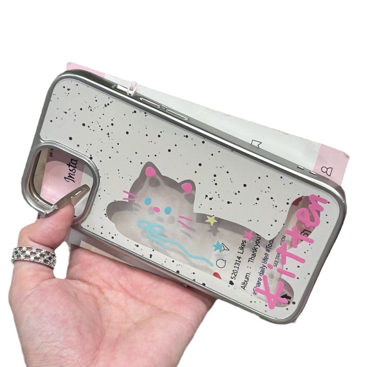 爆款镂空猫咪适用苹果14可爱15promax简约iPhone11全包13手机壳12