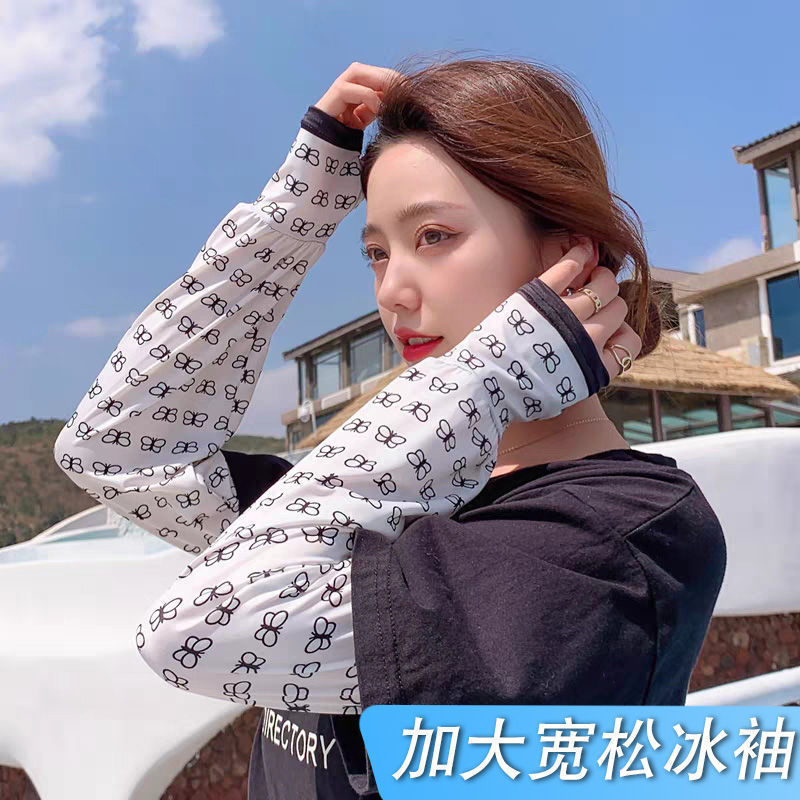 幸运草防晒冰袖大码宽松护臂手袖夏季户外开车防紫外线冰丝袖套女