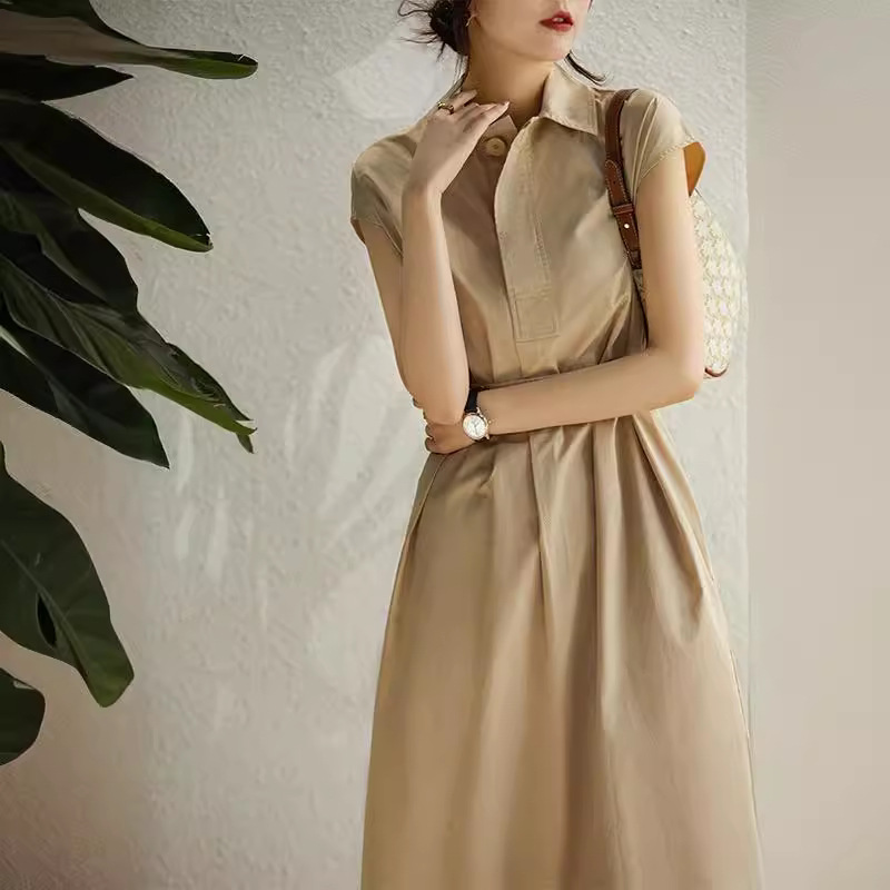 低调的质感文艺风 气质夏季女POLO领短袖连衣裙
