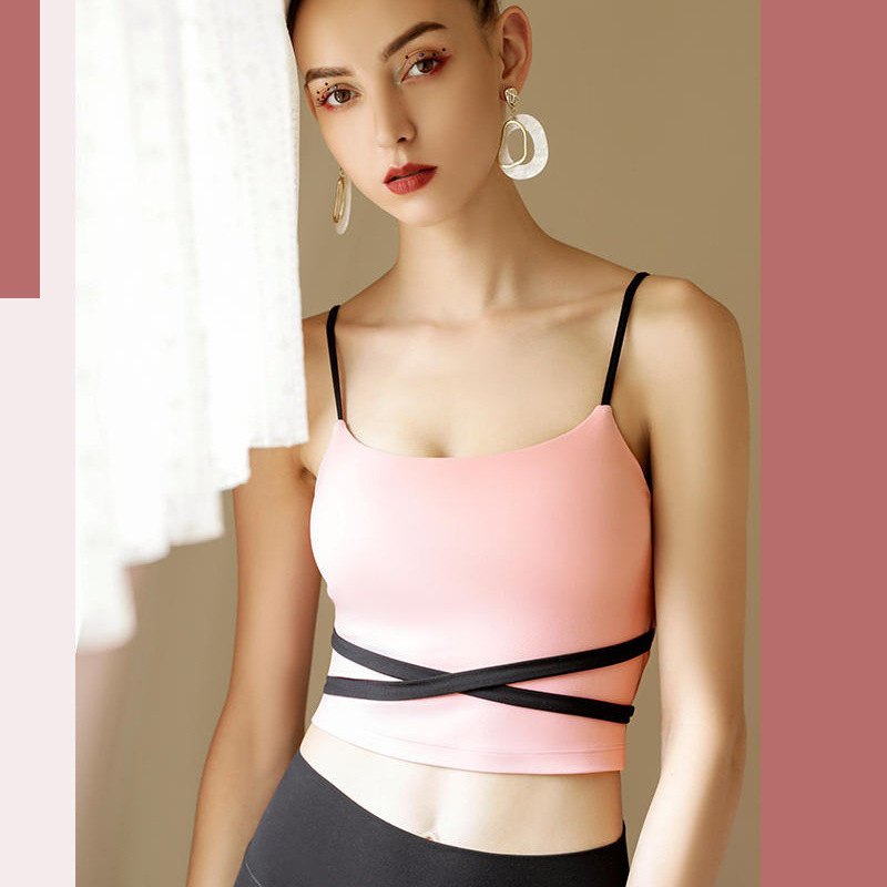 新款瑜伽背心女 拼色速干含胸垫锦纶高弹运动健身吊带上衣舞蹈服
