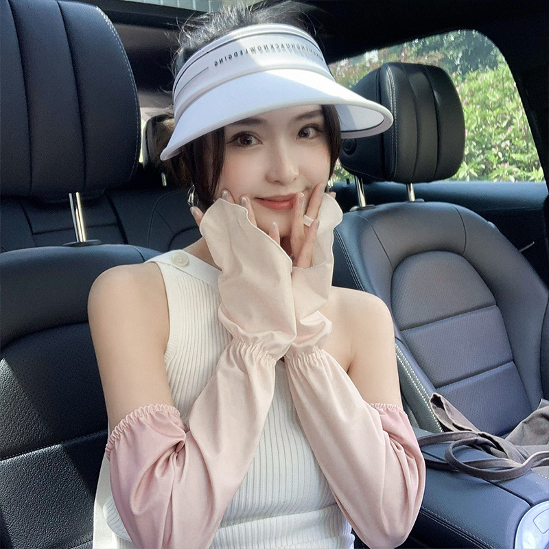 夏冰袖渐变色可爱宽松荷叶边防晒袖套网红百搭女冰丝户外骑行爬山