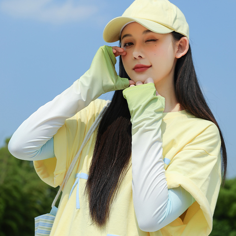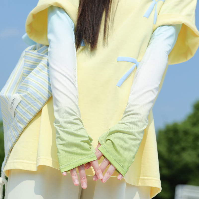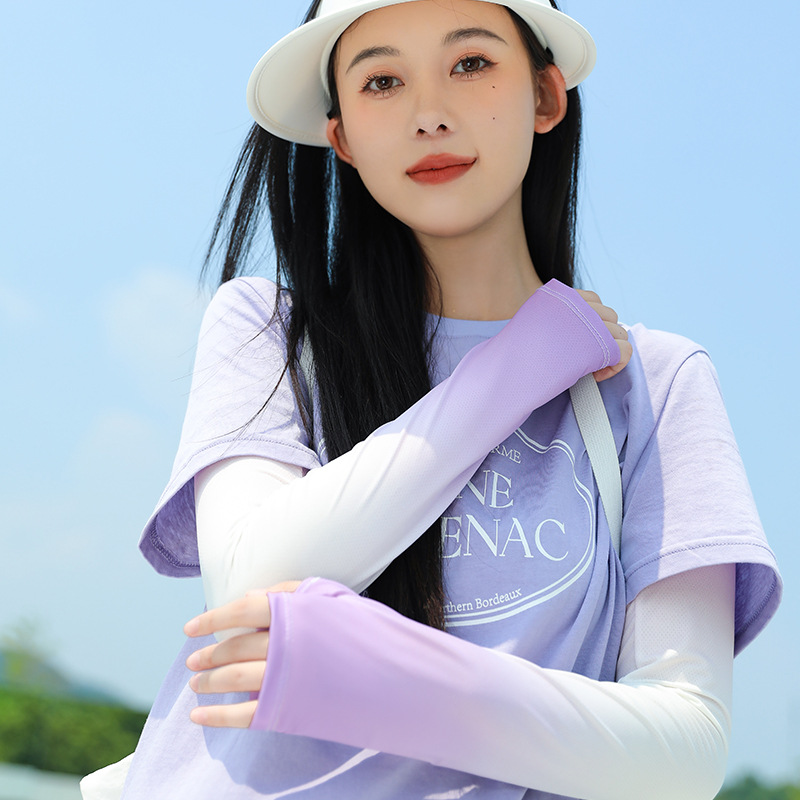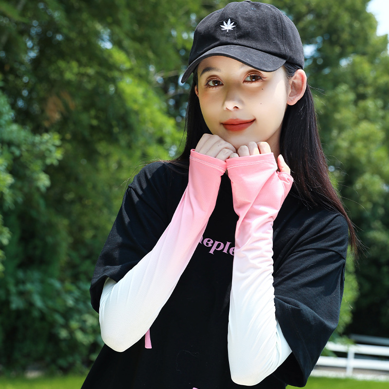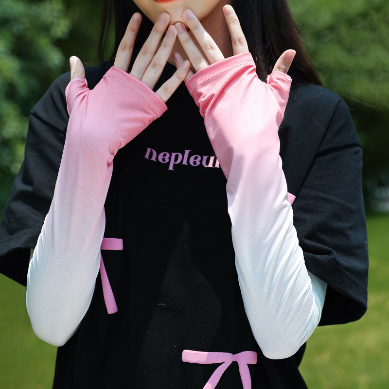 夏季冰袖渐变色可爱防晒袖套女冰丝运动户外骑行开车防紫外线露指