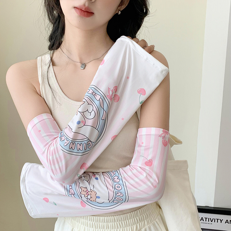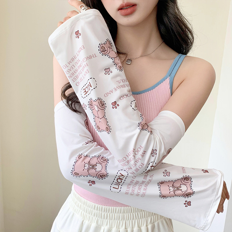 ins风夏季冰袖可爱防晒袖套女冰丝喇叭袖户外骑行爬山防紫外线露