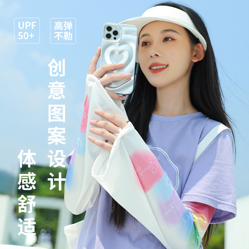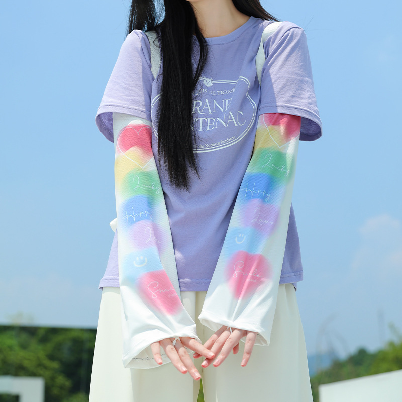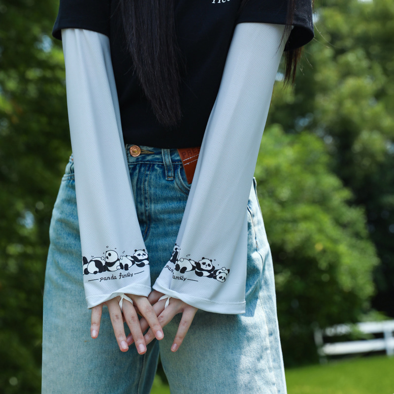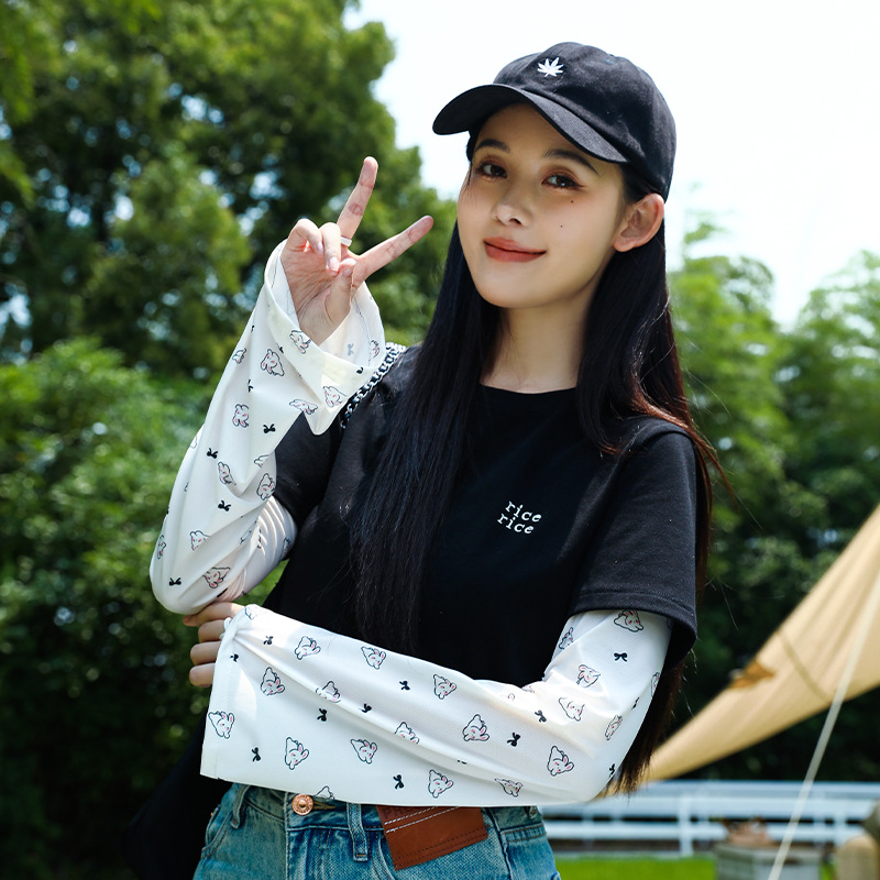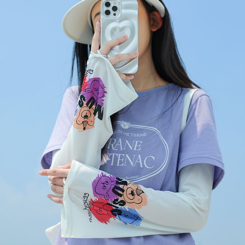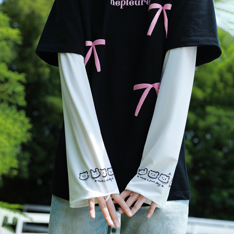 ins风夏季冰袖动漫可爱防晒透气袖套女 冰丝户外骑行钓鱼开车遮手