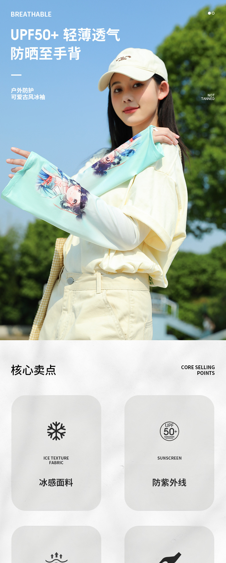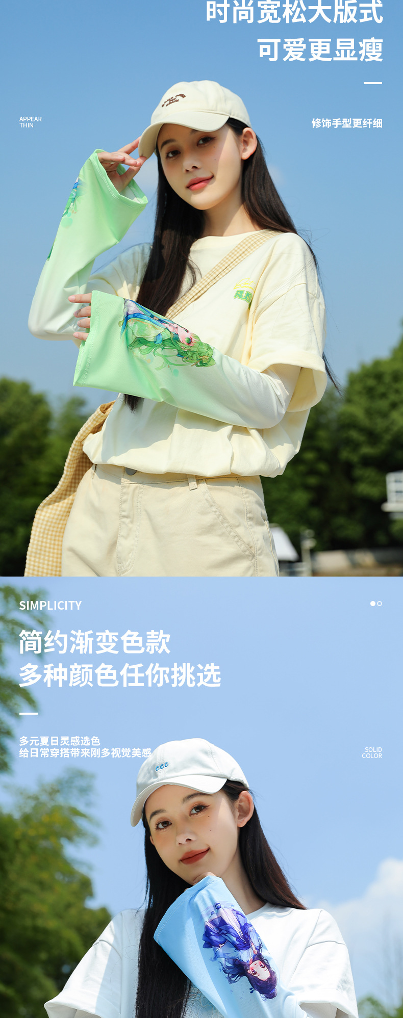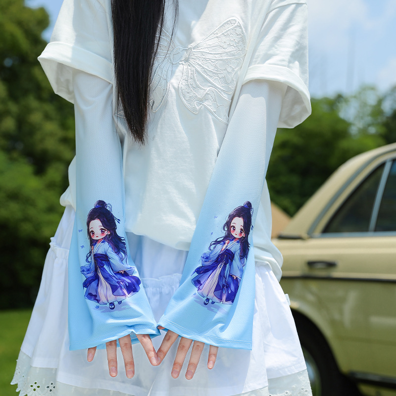 夏季冰袖可爱古风动漫防晒透气袖套女冰丝户外骑行钓鱼开车遮手背