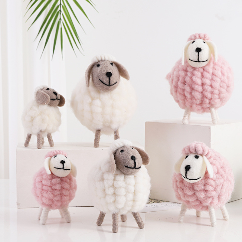 可爱羊ins毛毡羊绵羊摆件创意家居卧室儿童房北欧酒柜装饰品