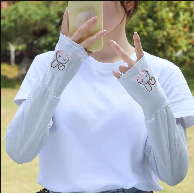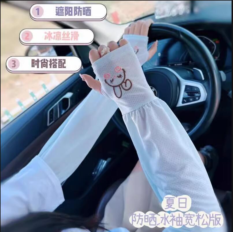 夏季防晒冰袖女可爱小兔子透气轻薄冰丝宽松袖套户外骑行手袖