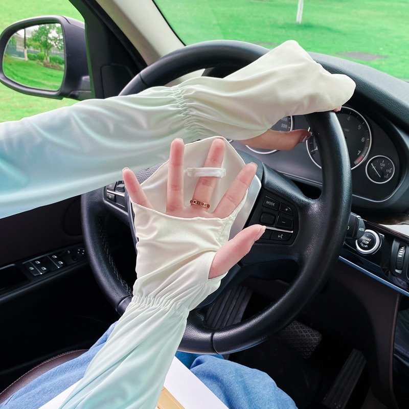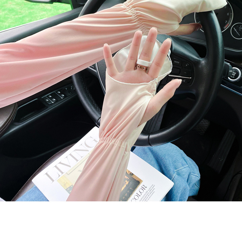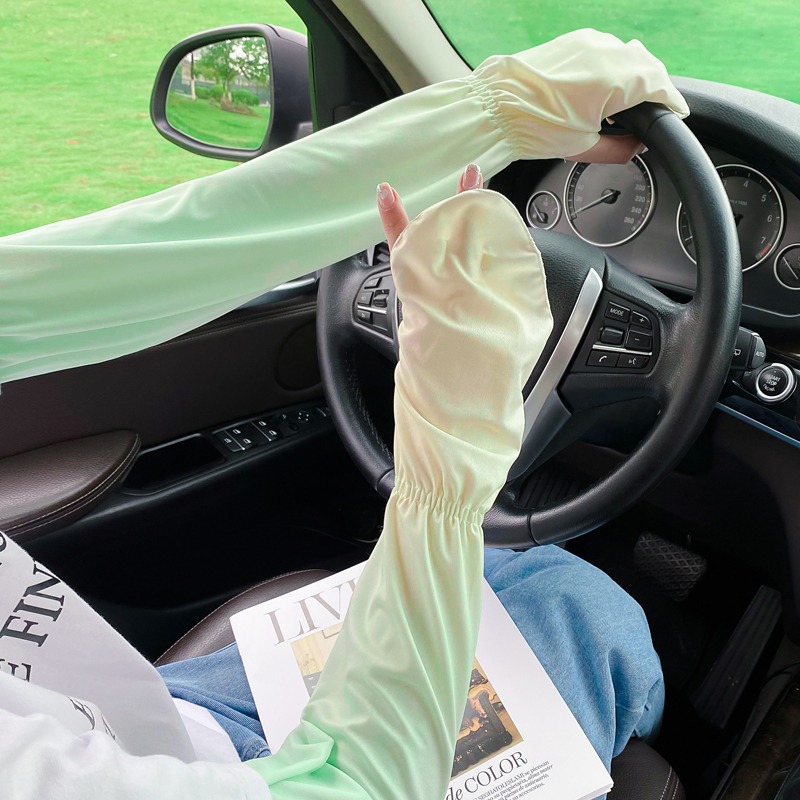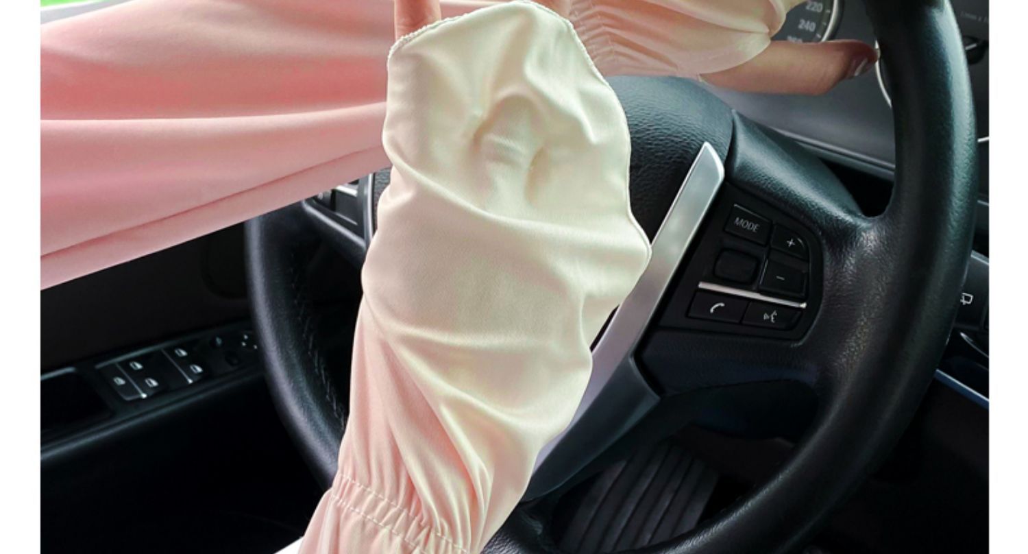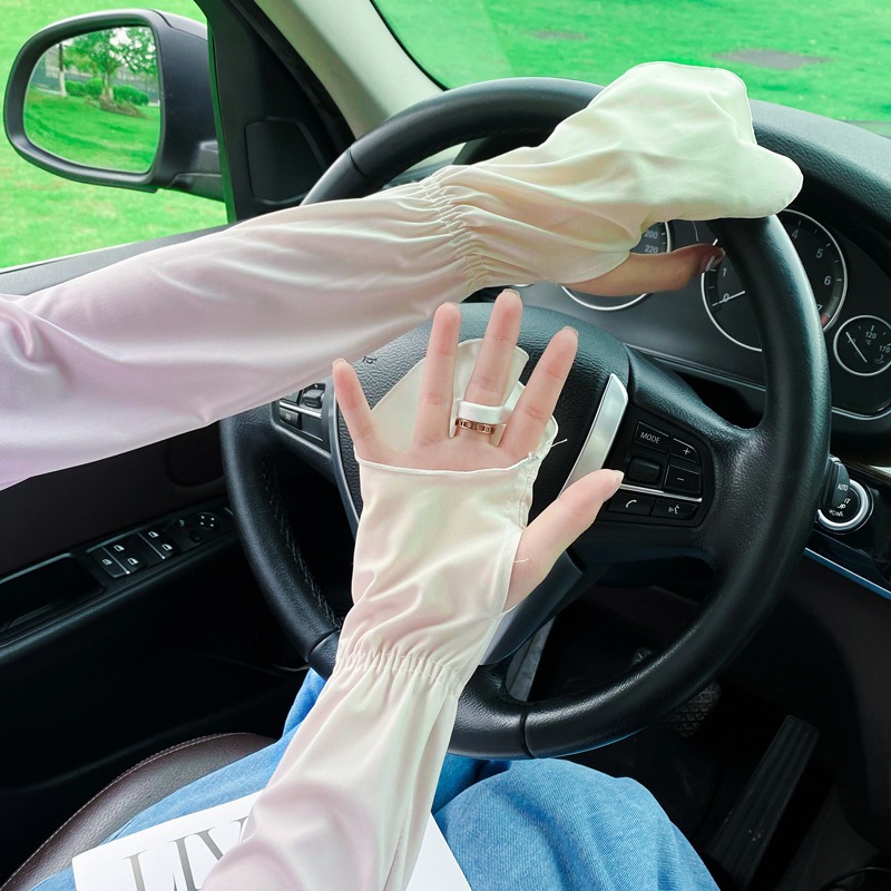 夏季户外防晒冰丝袖套女士珍珠长款冰袖蝴蝶结手臂套冰袖