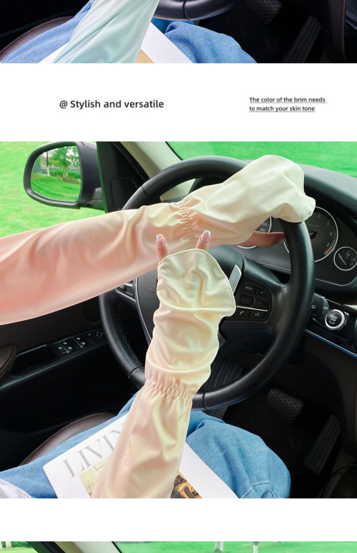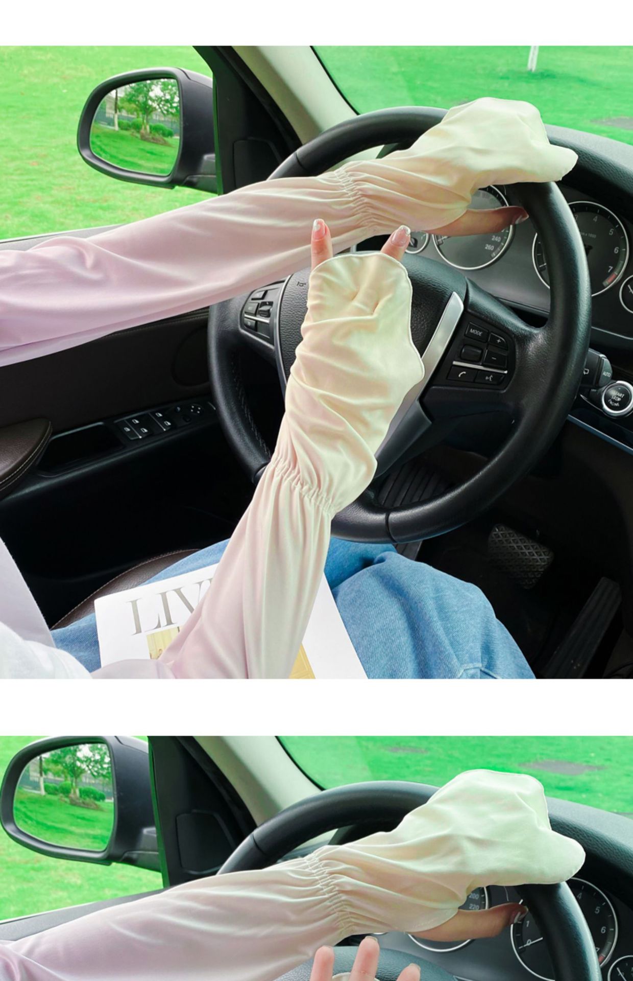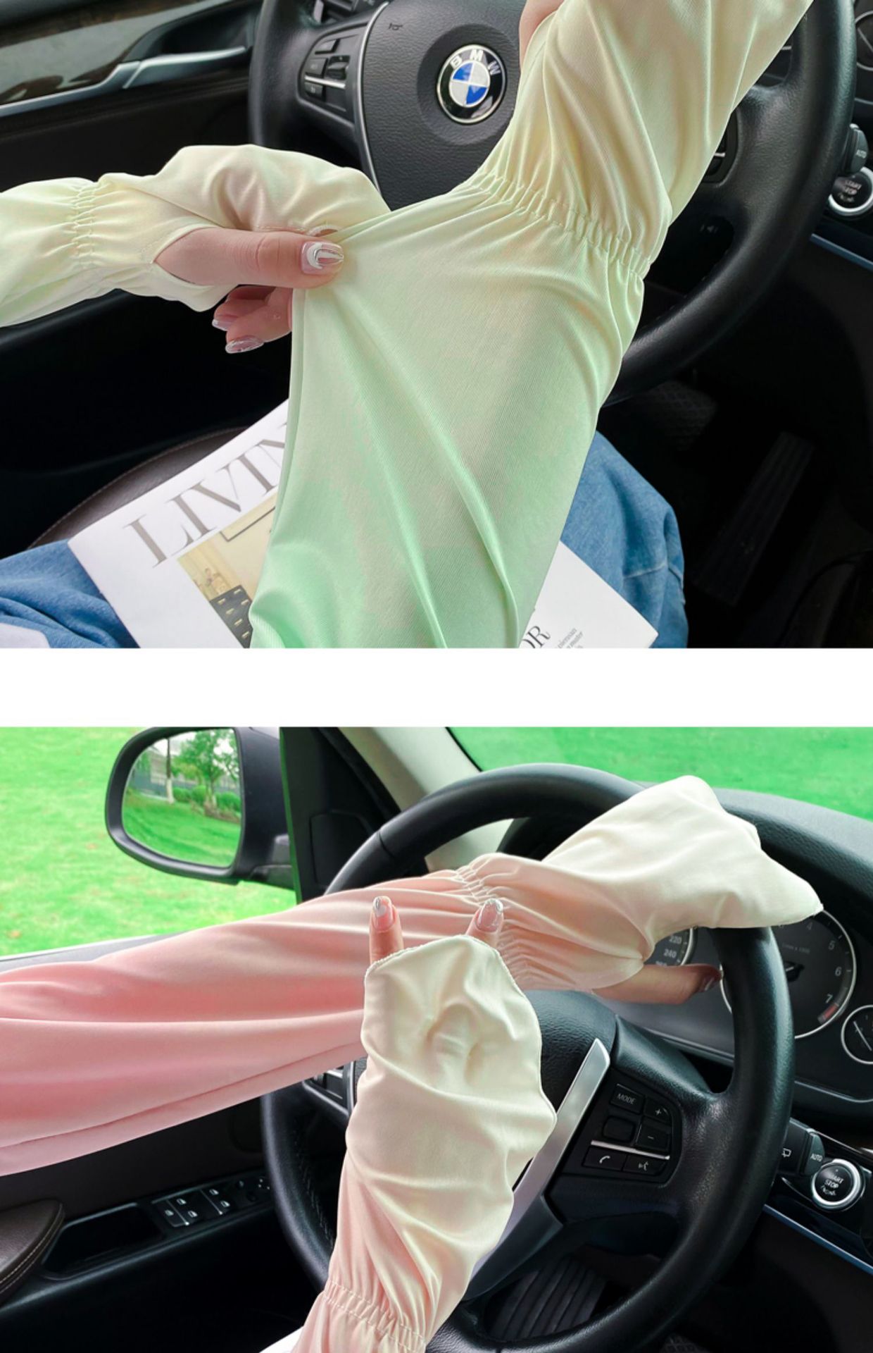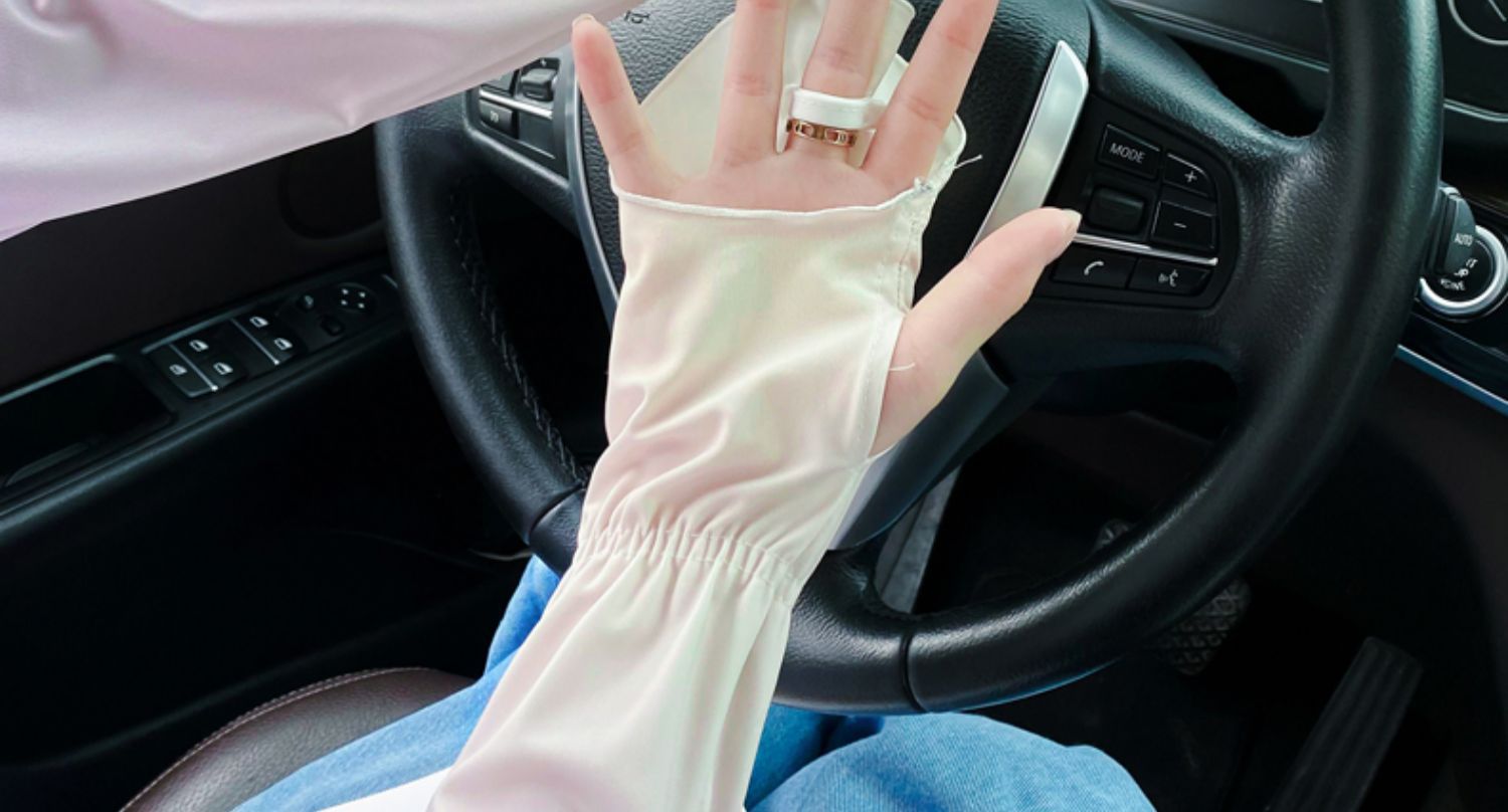 夏季户外防晒冰丝袖套女士珍珠长款冰袖蝴蝶结手臂套冰袖