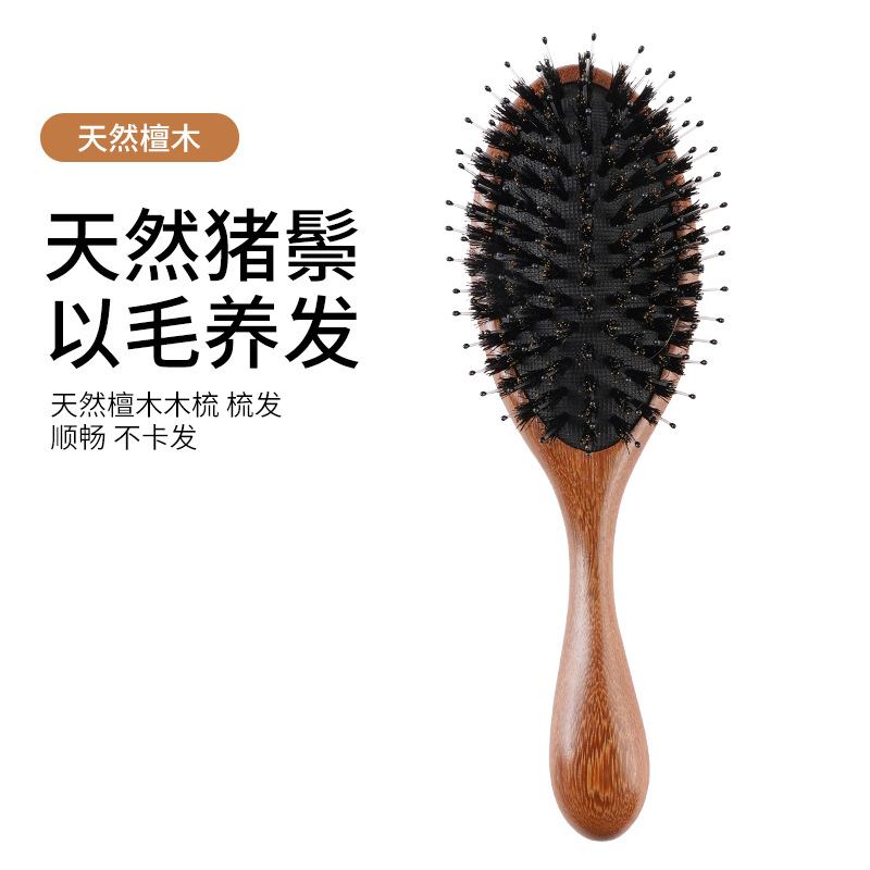 猪鬃毛圆气垫梳蓬松头发按摩梳美顺发气囊檀木质梳子控油家用头部