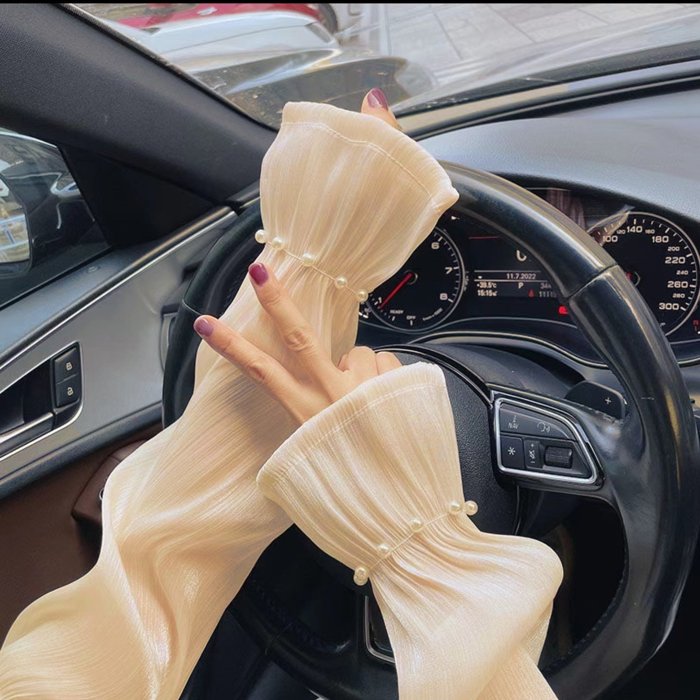 开车防晒珍珠袖套冰丝薄款 夏季透气遮阳防紫外线冰袖