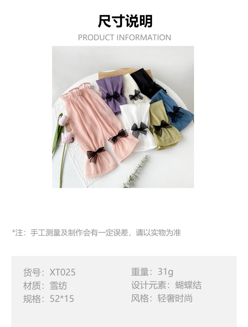 夏季新品防晒袖套女户外骑行开车防紫外长款蝴蝶结装饰防晒袖套女