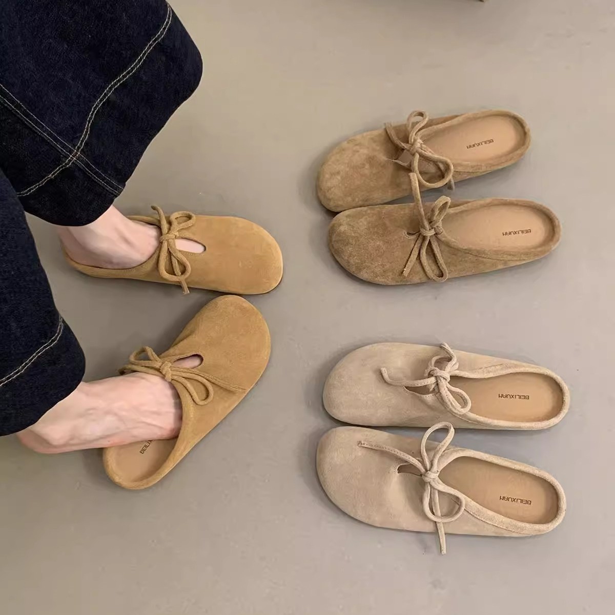 博肯包头半拖鞋女外穿平底半托2025春季新款复古防滑丑萌凉拖鞋