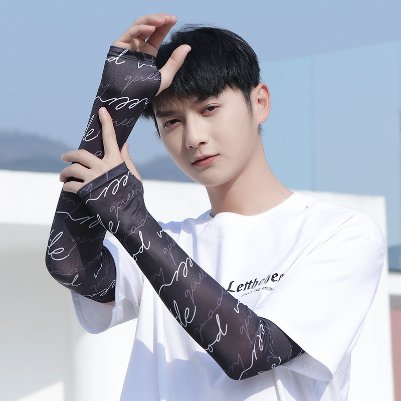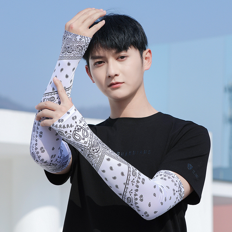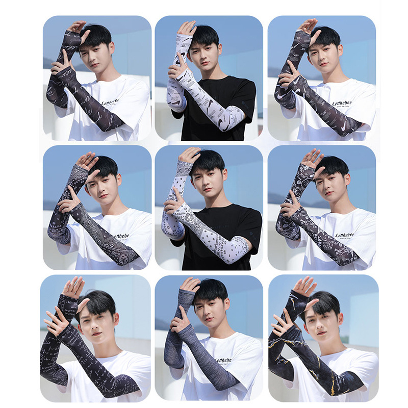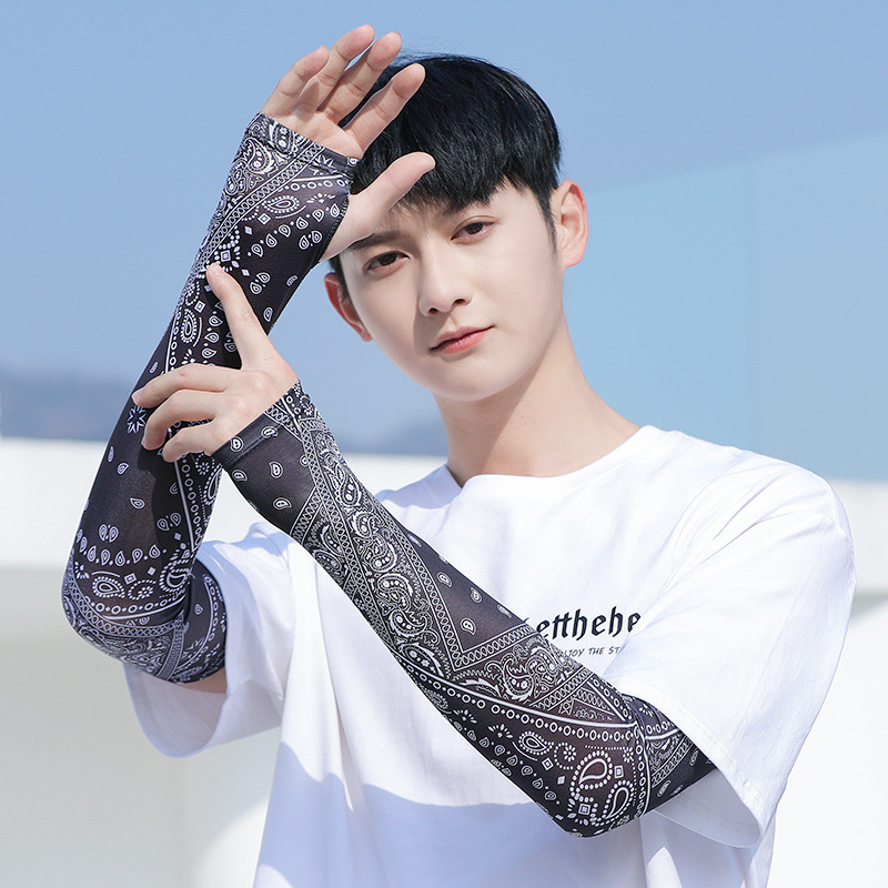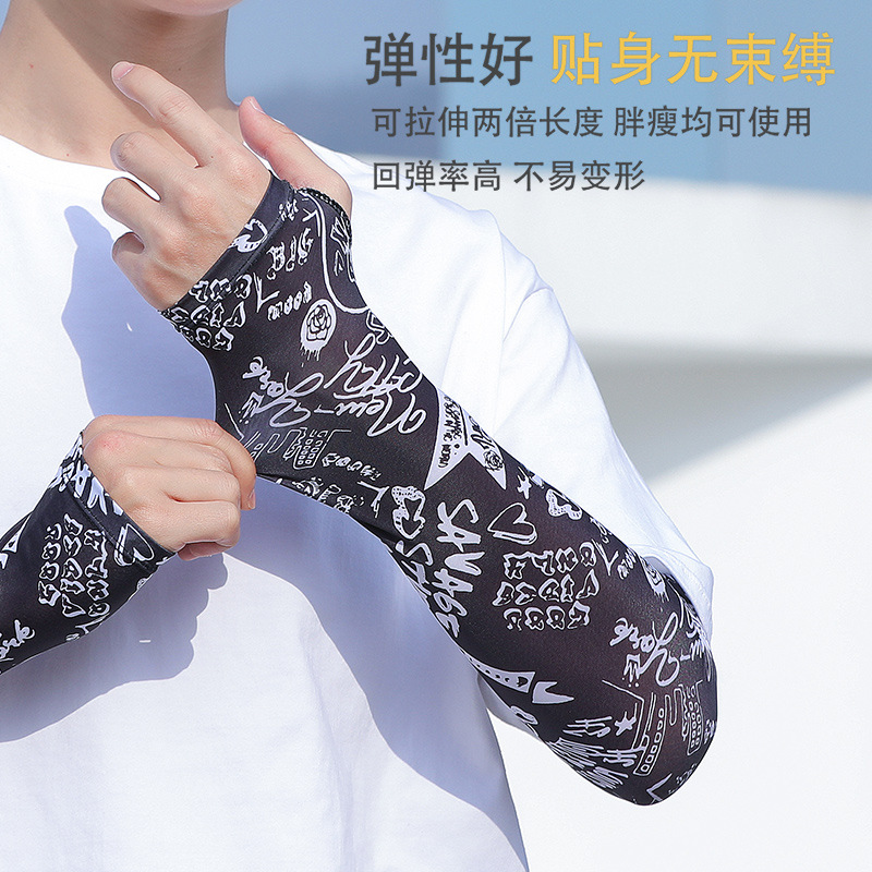 夏季防晒户外骑行开车男女防紫外线冰丝冰袖套袖护臂印花亲肤
