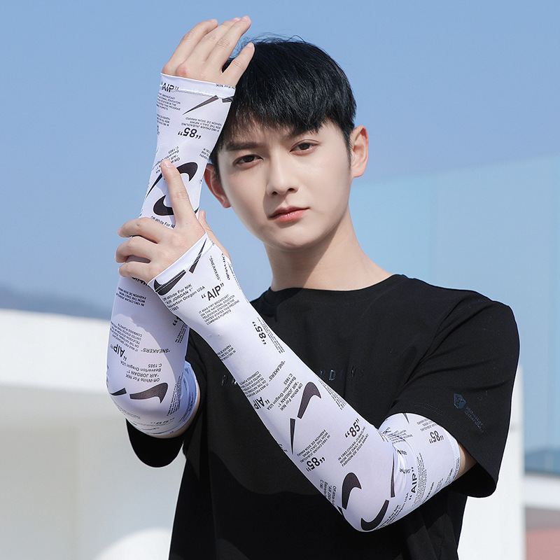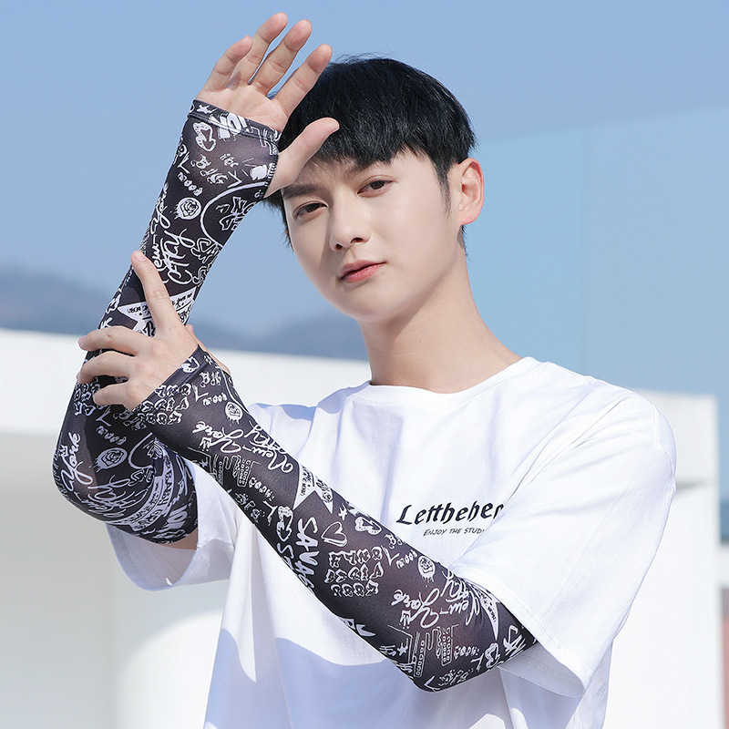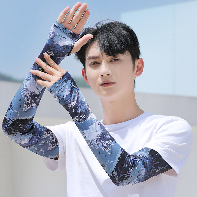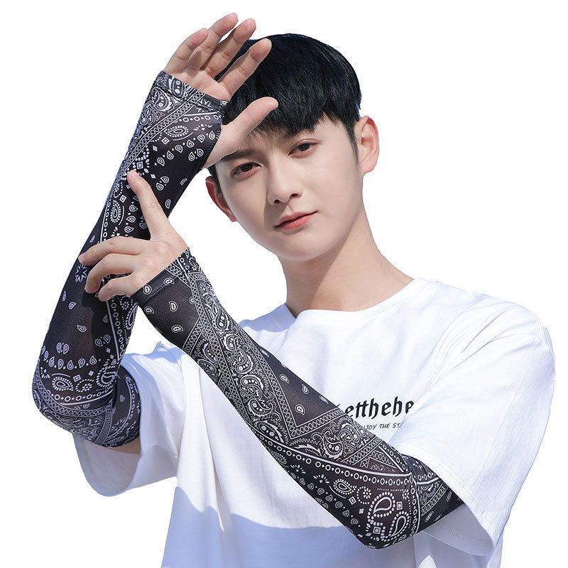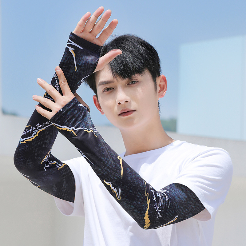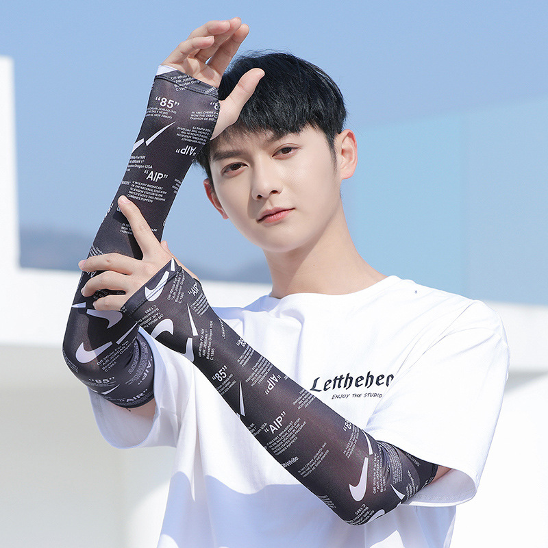 夏季防晒户外骑行开车男女防紫外线冰丝冰袖套袖护臂印花亲肤