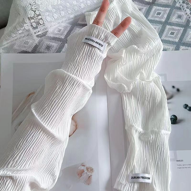 夏季ins袖套版褶皱袖套防晒外线冰袖冰丝宽松新款纯色学生防百搭