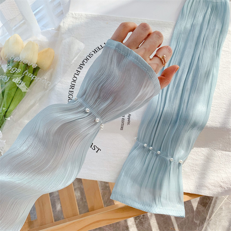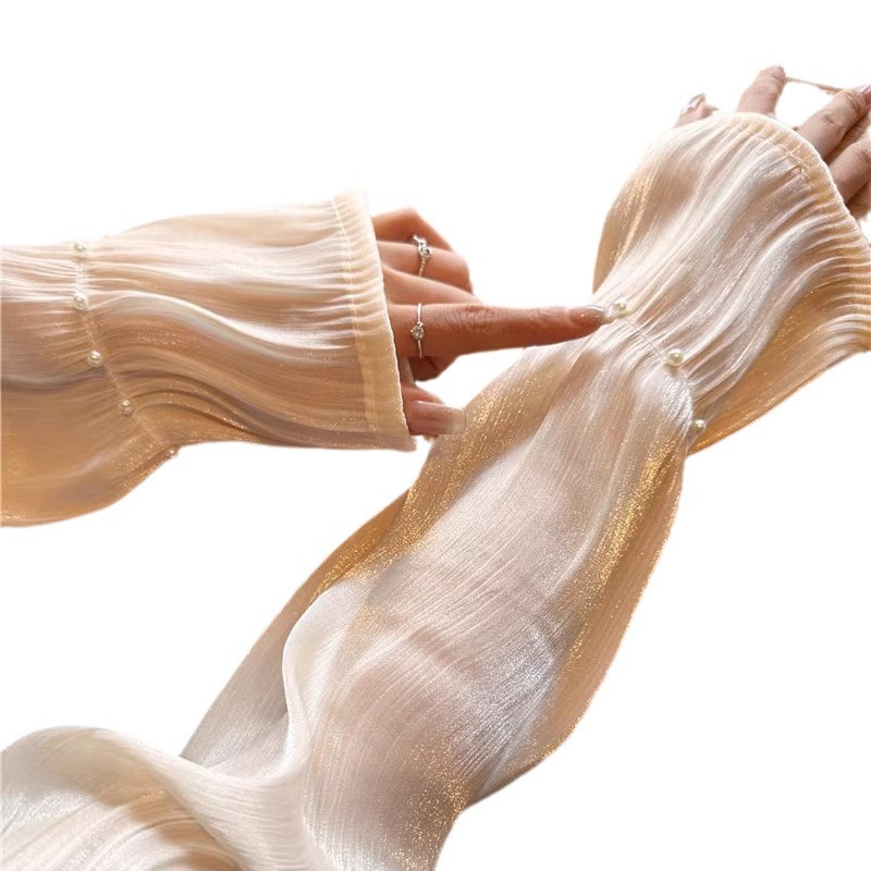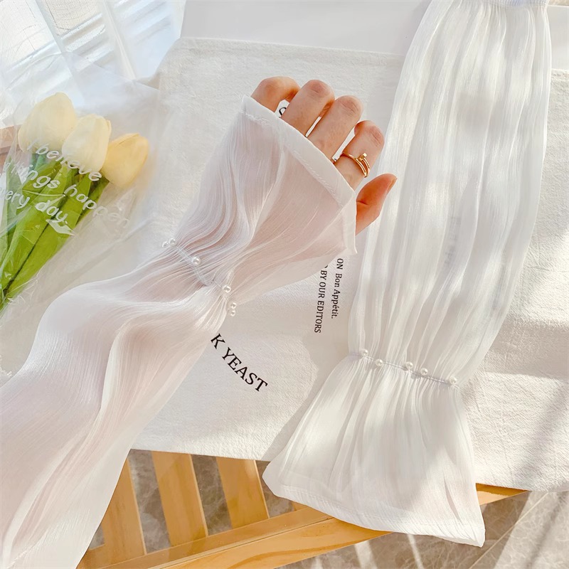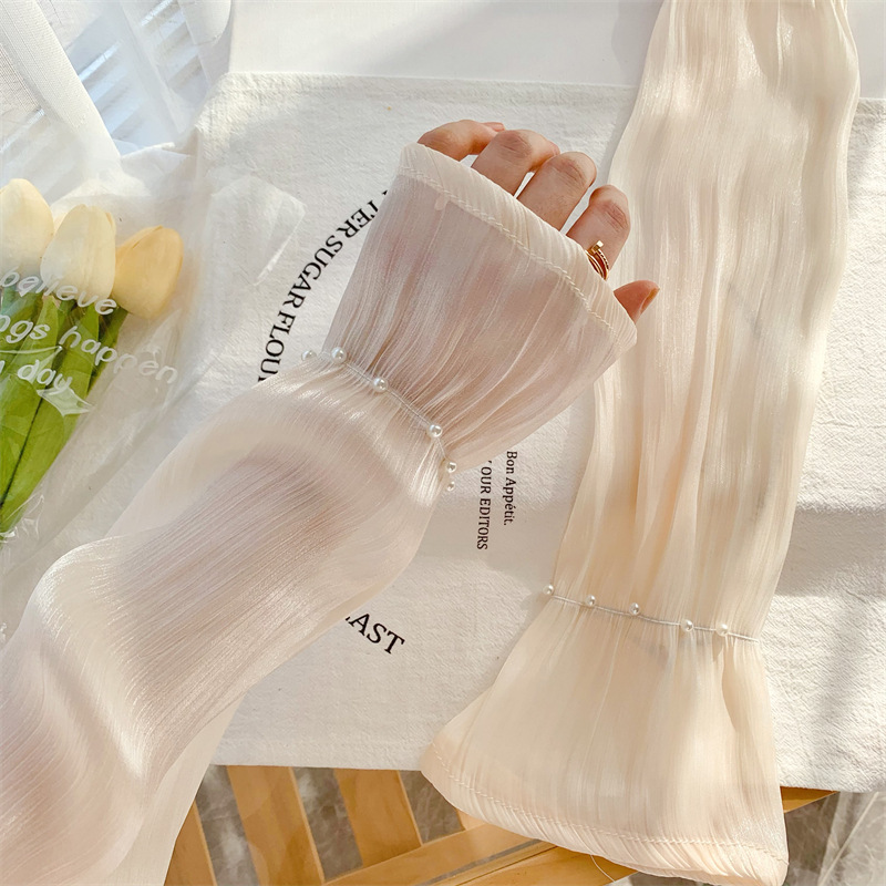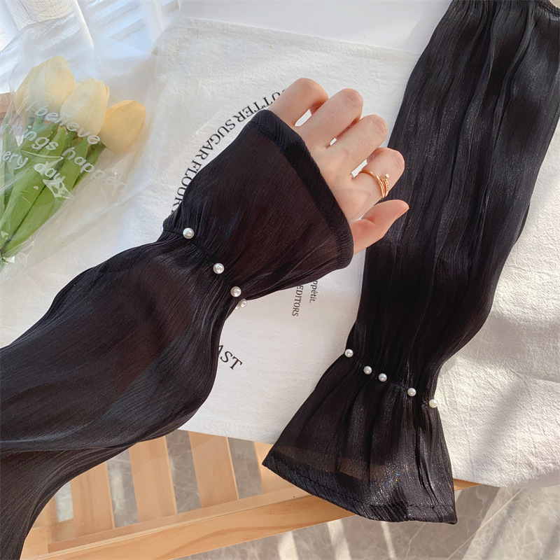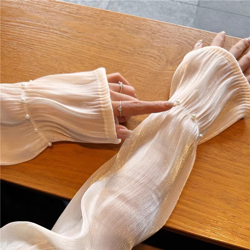 网红珍珠网纱防晒袖套女款冰袖夏季开车手套防紫外线时尚宽松手袖