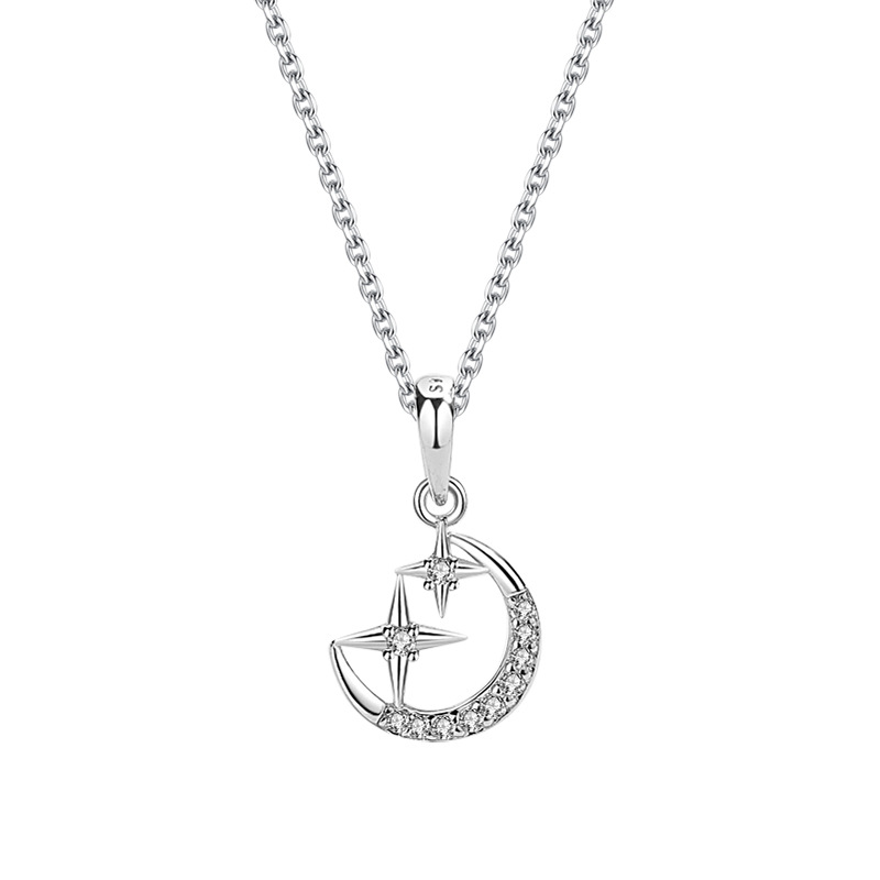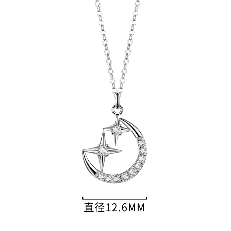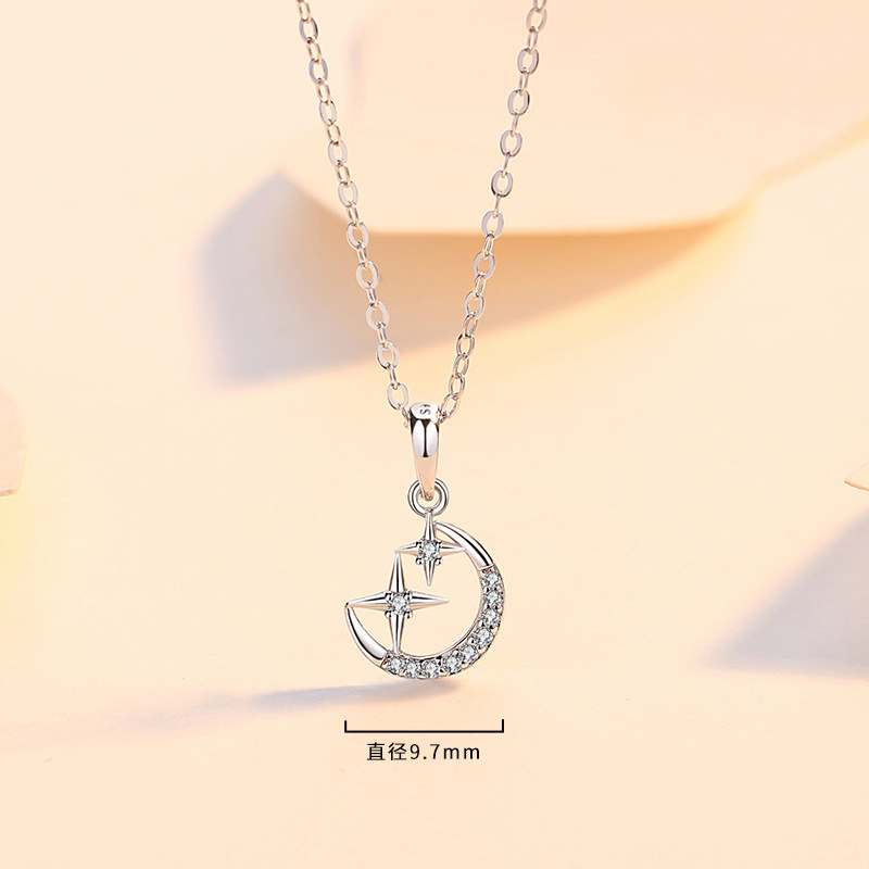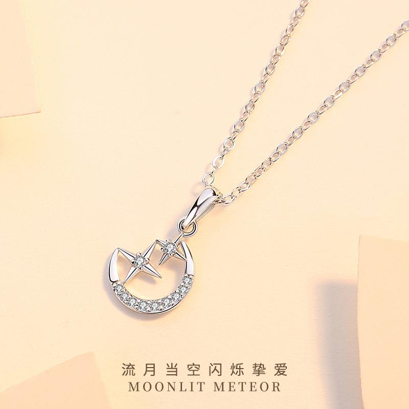 达米拉月夜流星项链女s925纯银微镶时尚韩版星月锁骨链银项饰