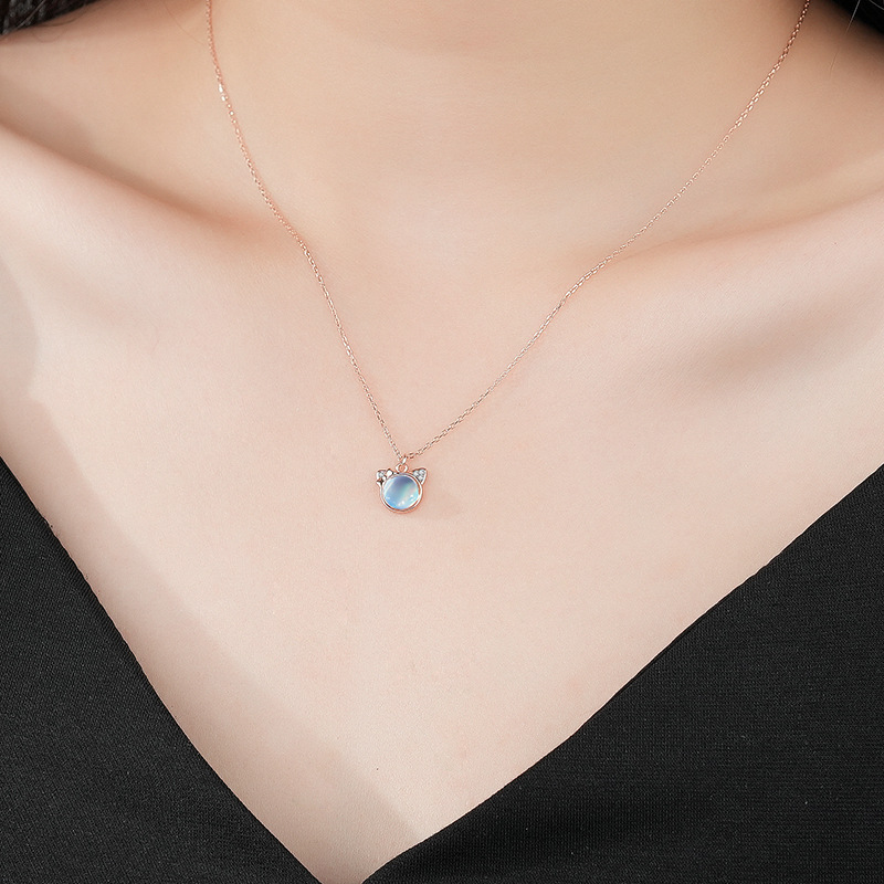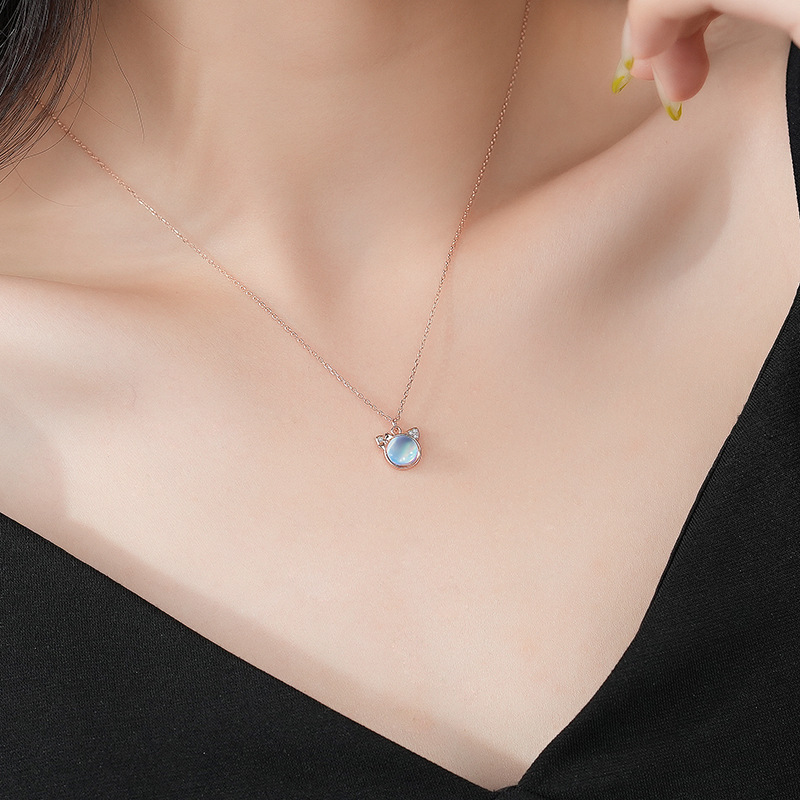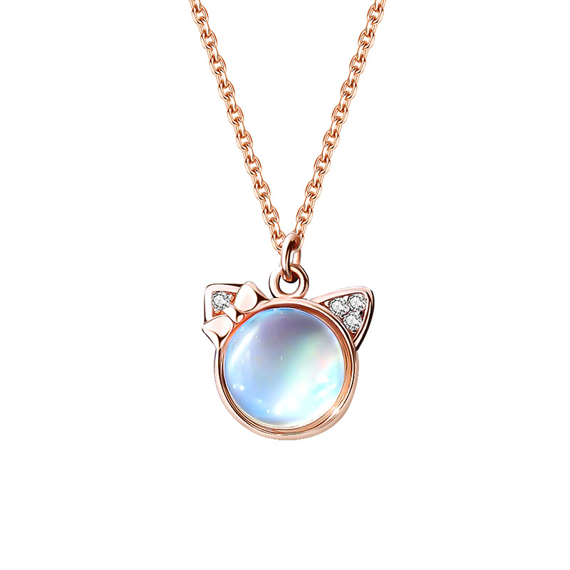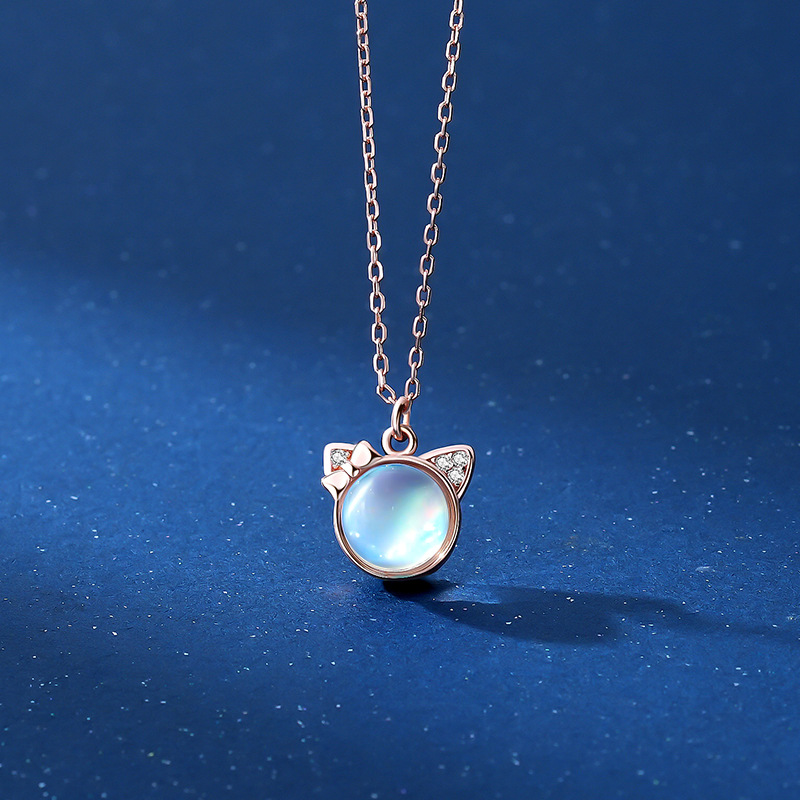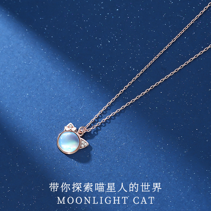 达米拉新款月光石猫咪项链女s925纯银镀玫瑰金色可爱风百搭锁骨链