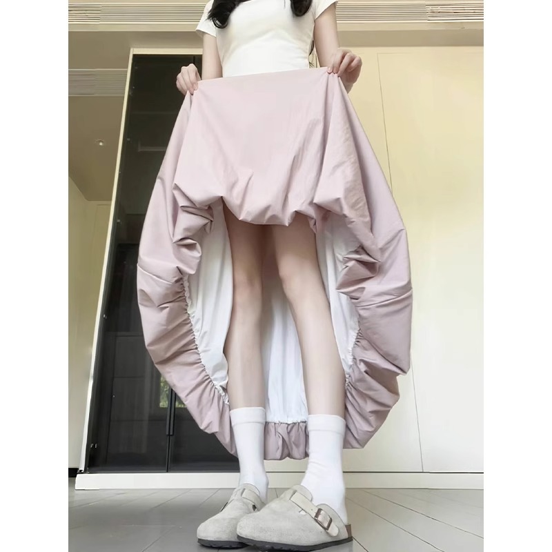 灰色花苞半身裙女夏季2025新款高腰宽松显瘦小个子a字冰丝蓬蓬裙