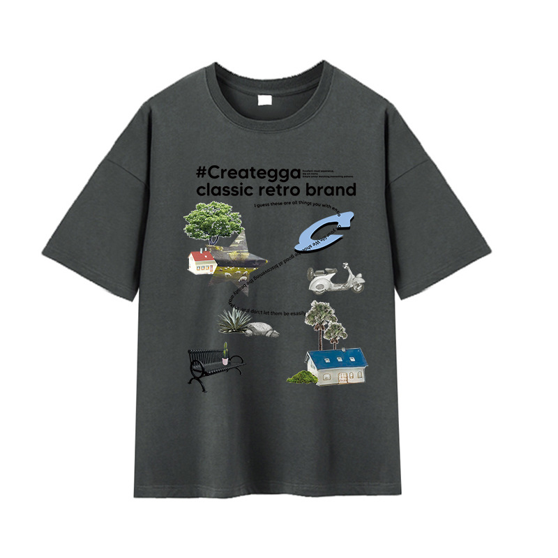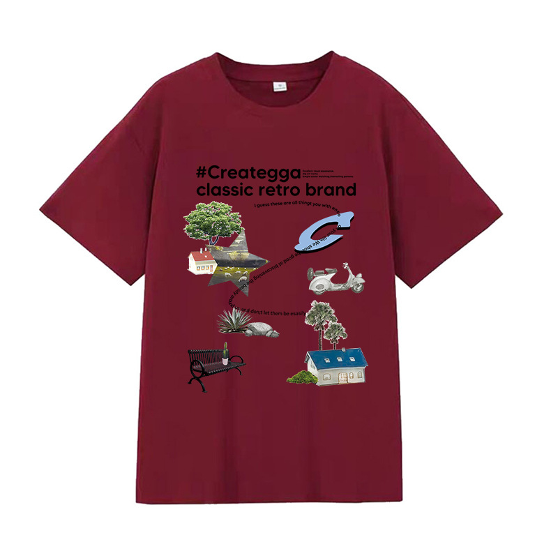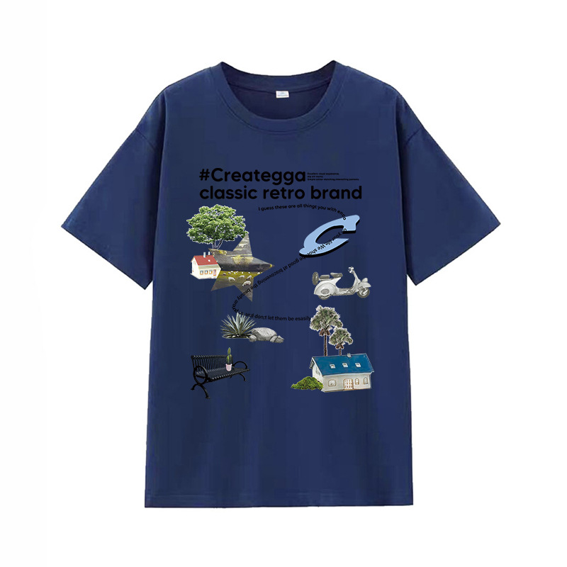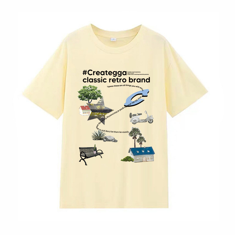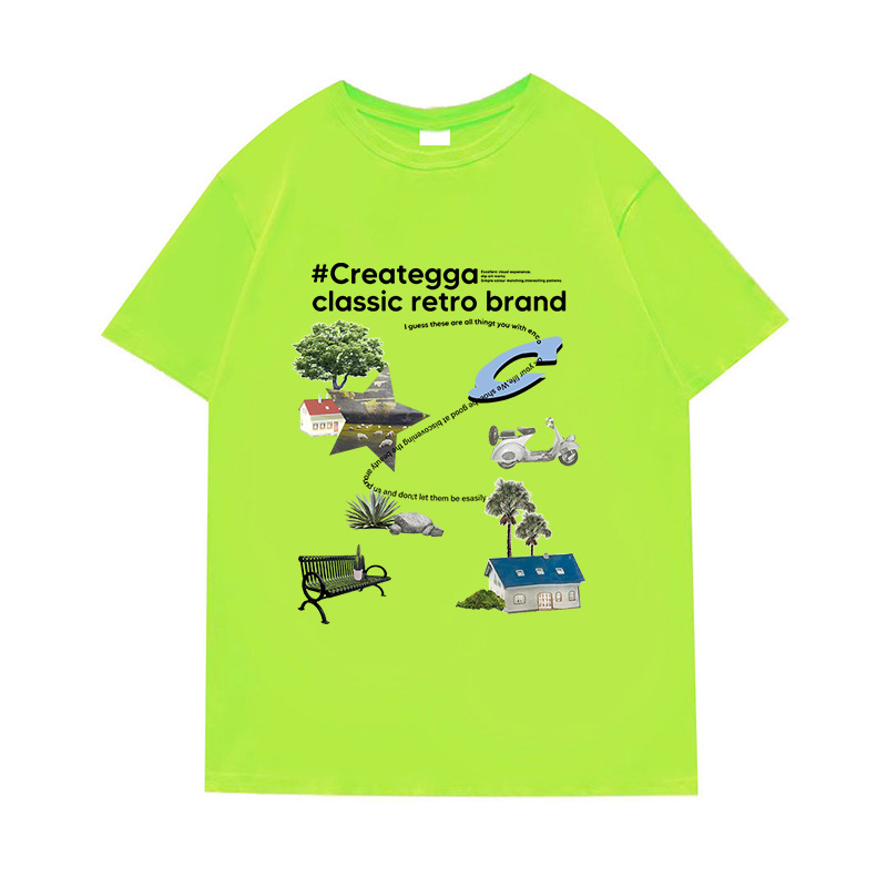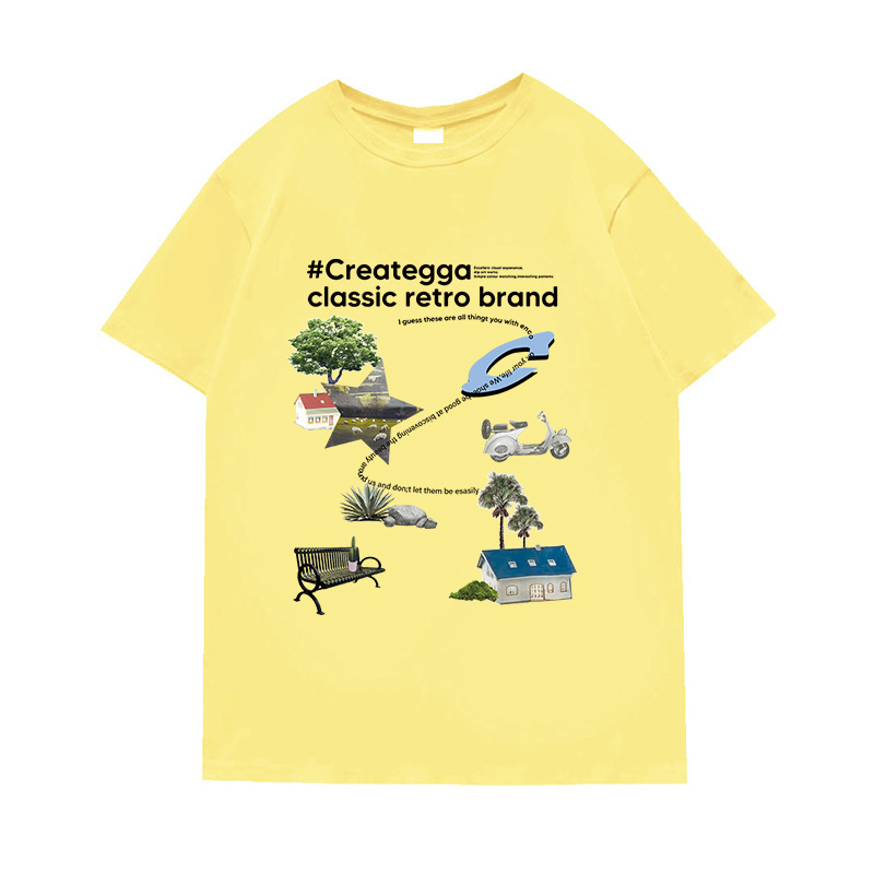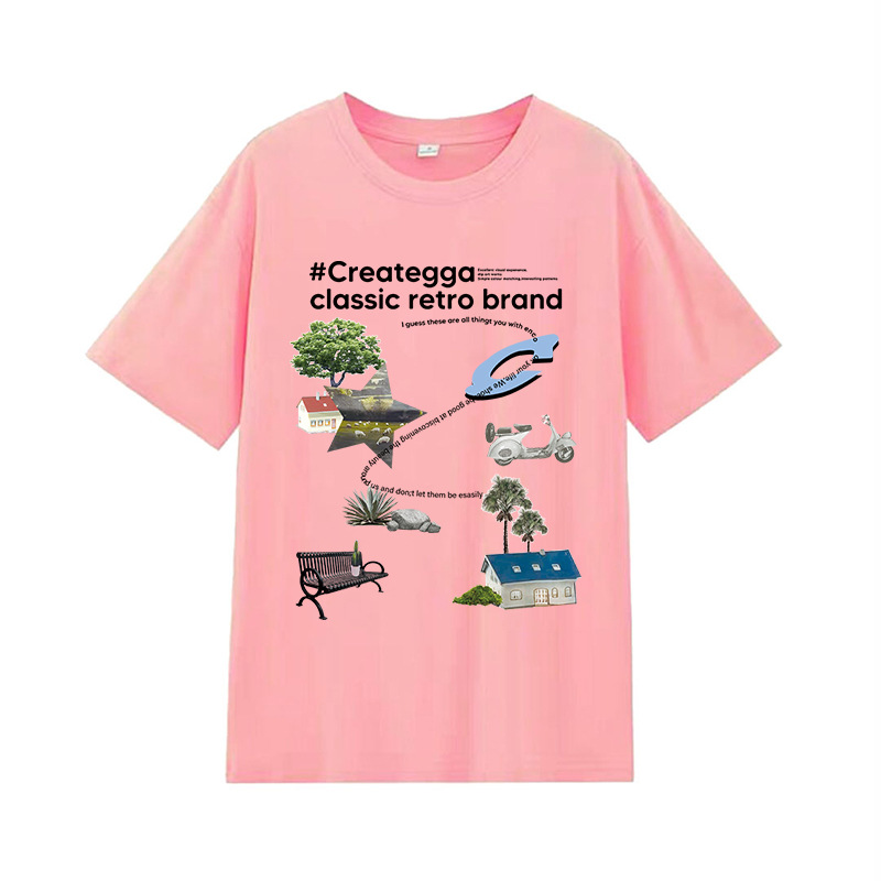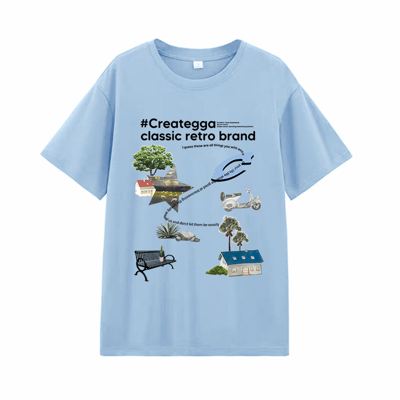 简约卡通印花情侣男女潮圆领套头学生夏季新款休闲短袖DT312