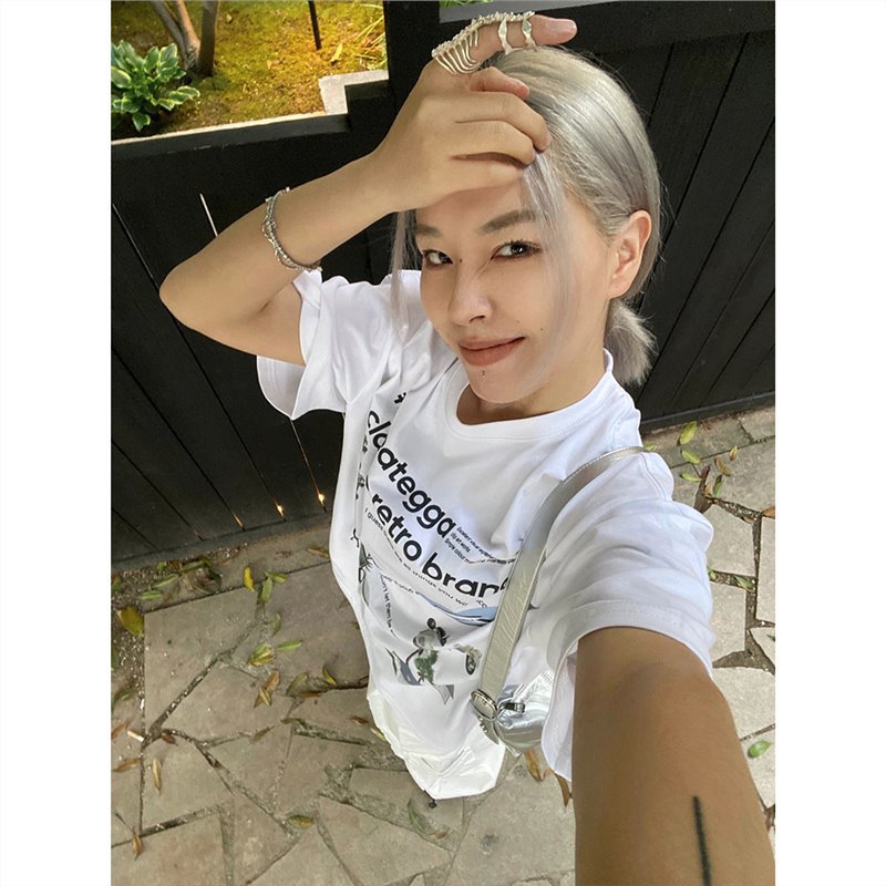 螺纹美式复古港味甜辣妹短款上衣女夏季修身设计感小众短袖t恤ins