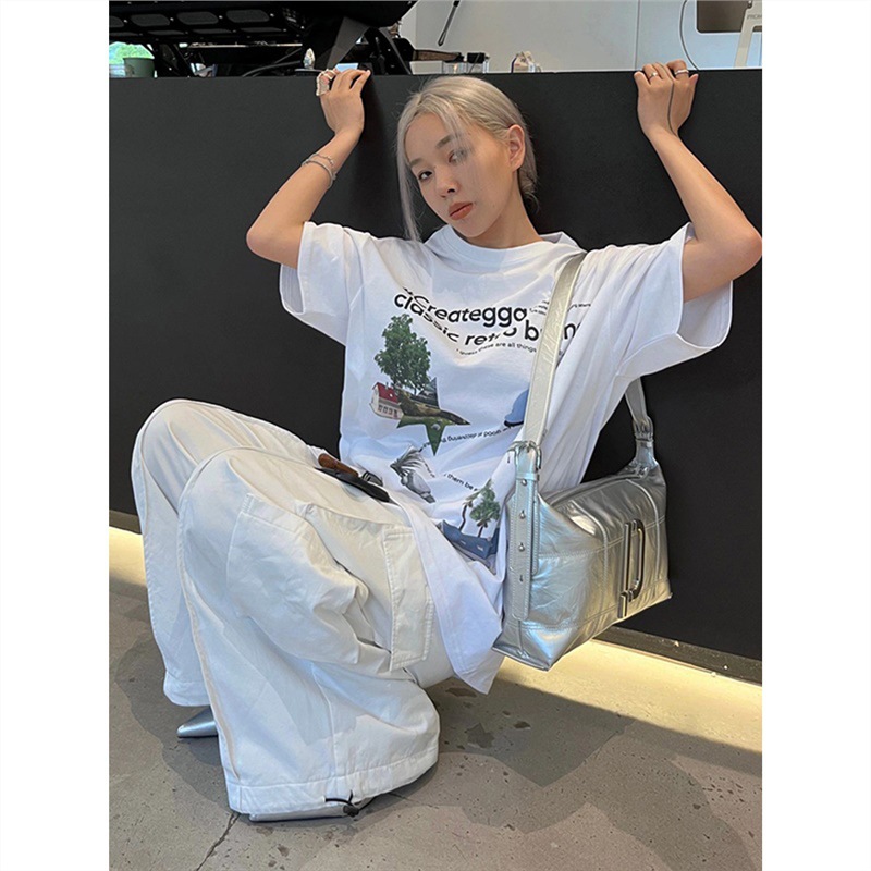 国潮oversize短袖女夏季新款宽松纯棉t恤美式复古情侣半袖上衣潮