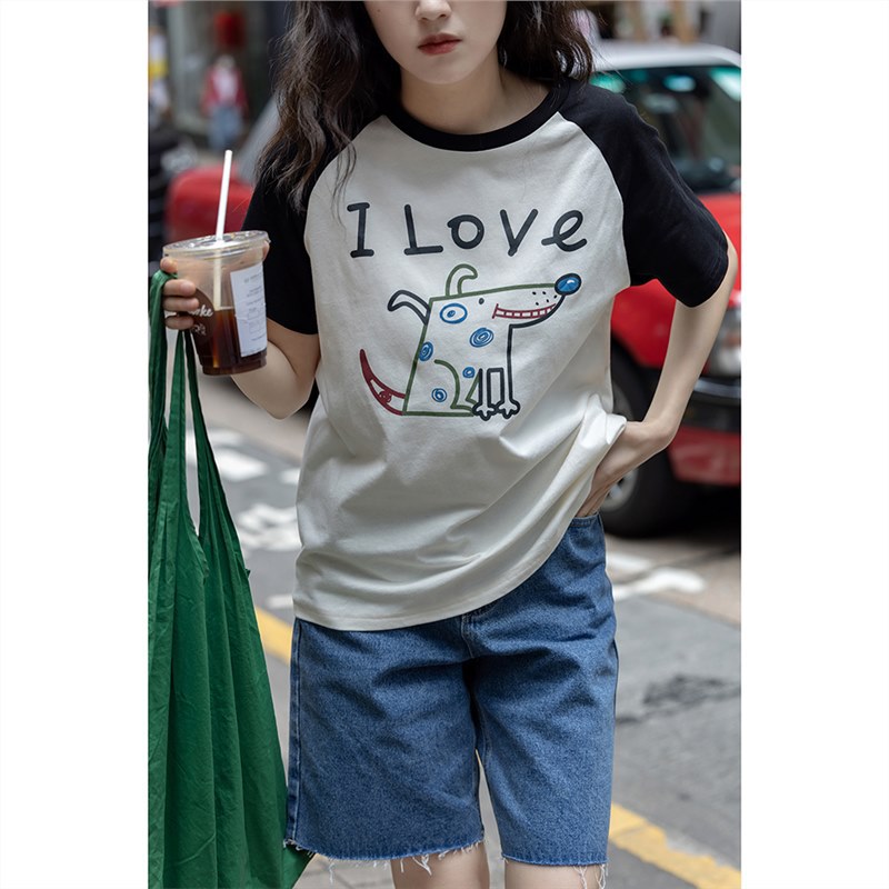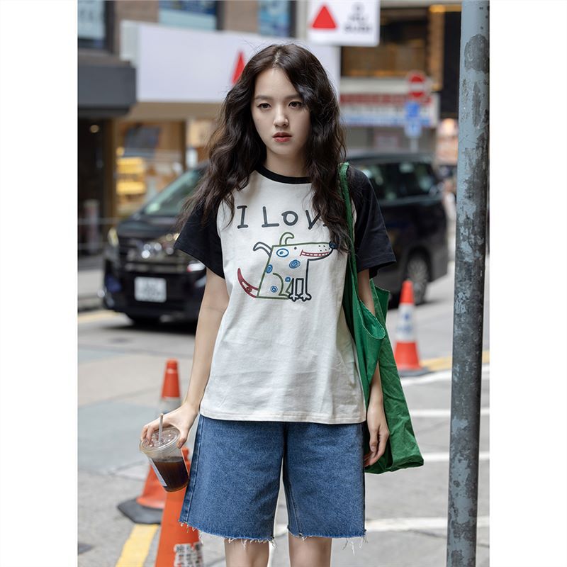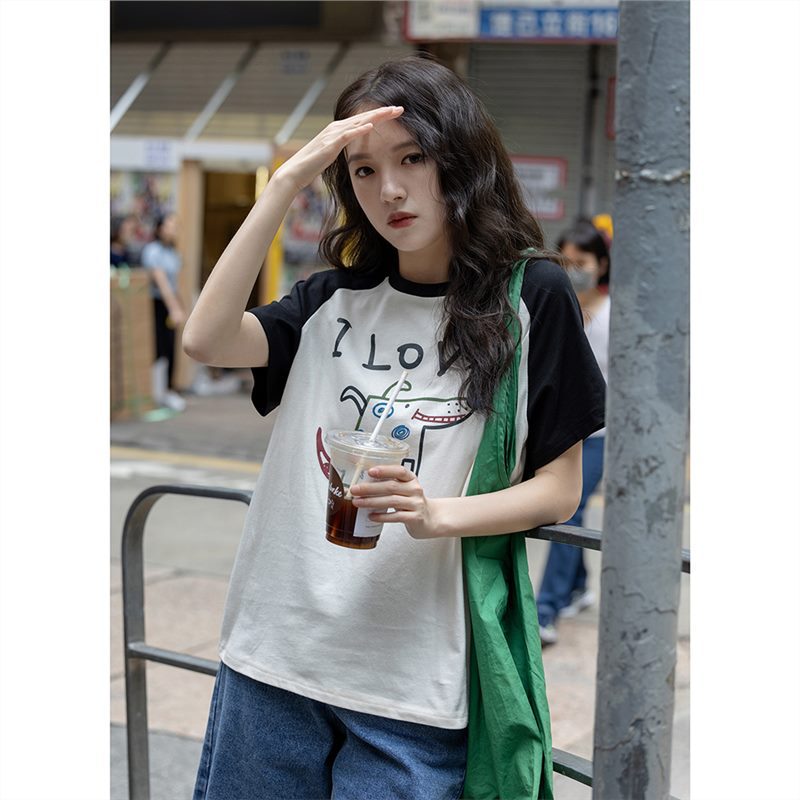 插肩短袖正肩t恤女夏显瘦内搭上衣设计感小众美式复古小个子