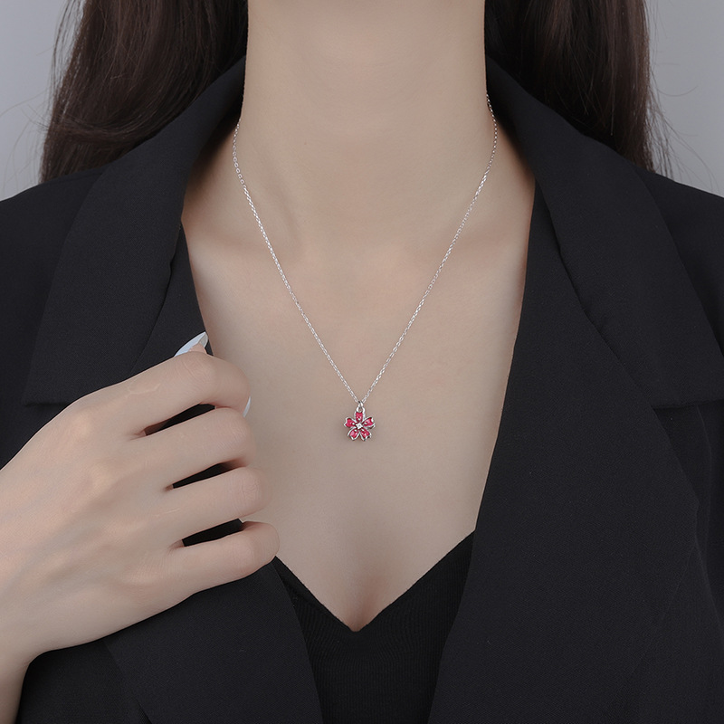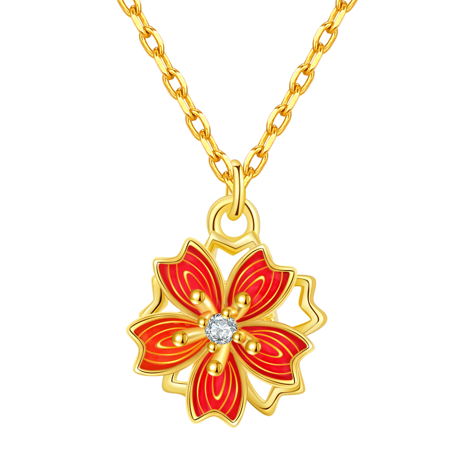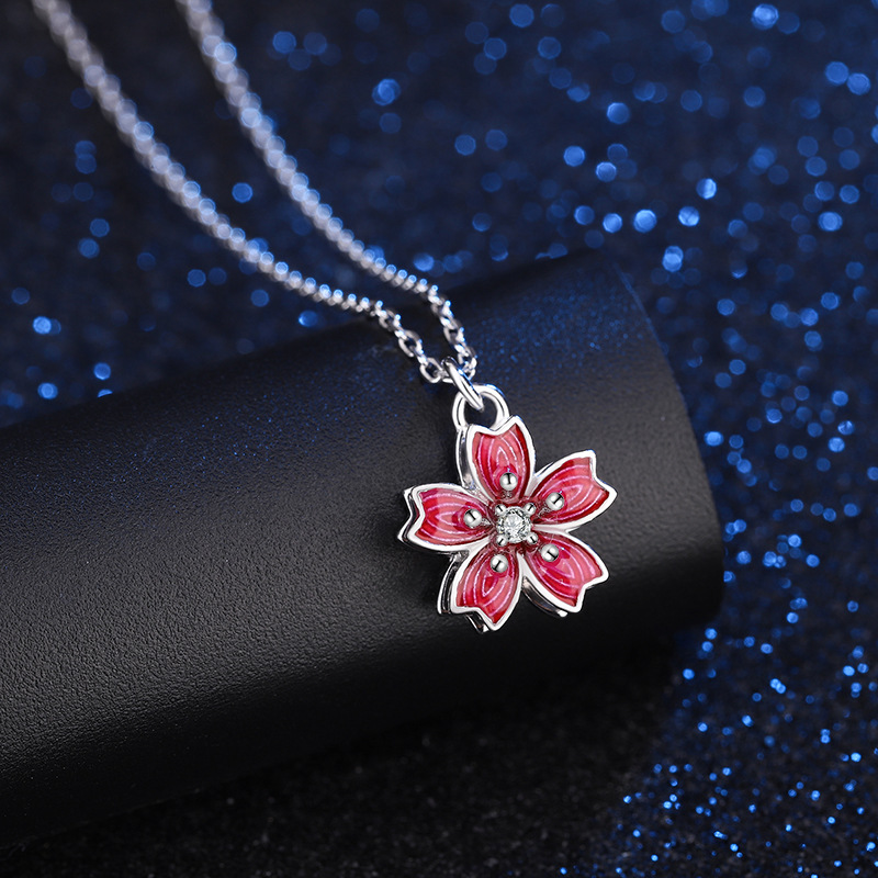 国风简约桃花项链女小众韩版s925纯银可旋转项链玫瑰金樱花锁骨链