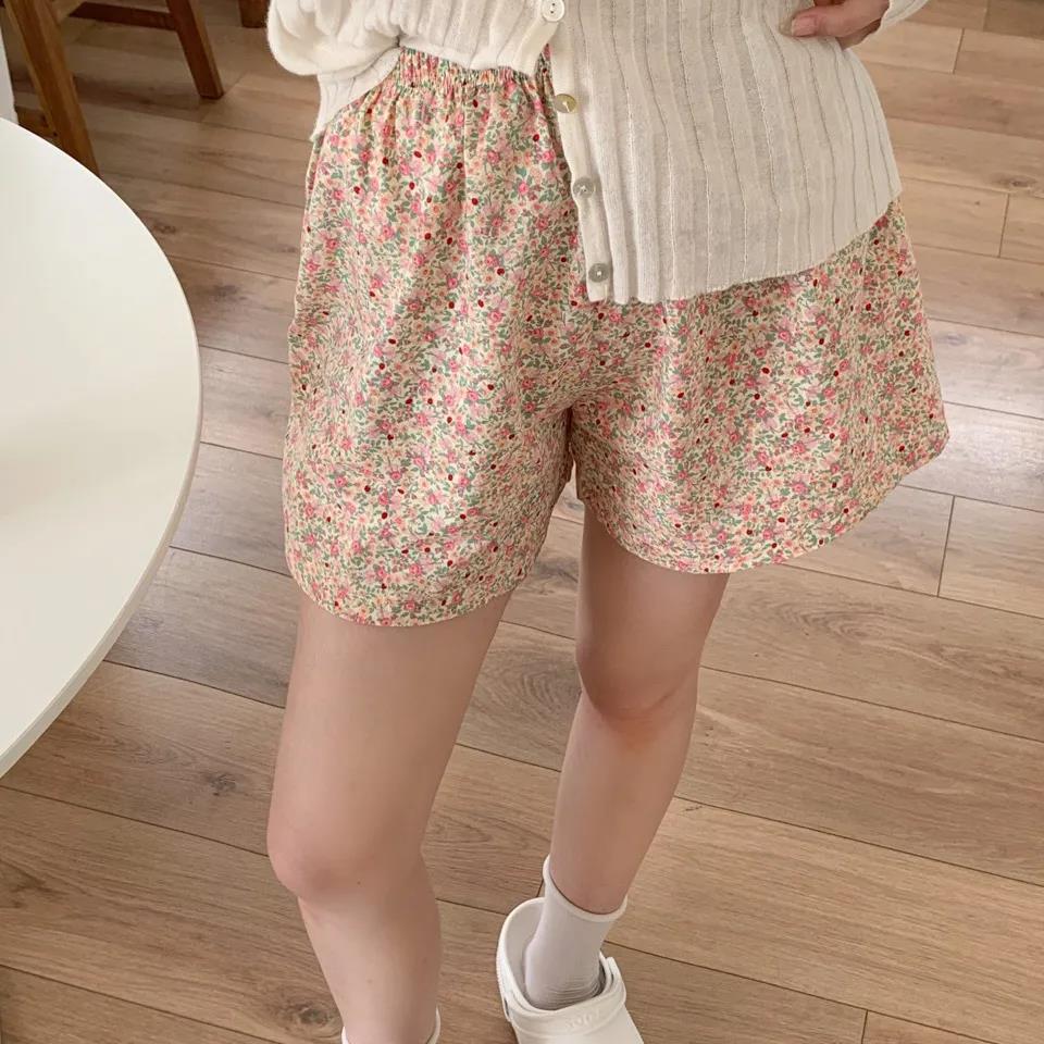 高档小碎花短裤凉快透气舒服女生夏天居家睡裤薄阔腿宽松百搭显瘦
