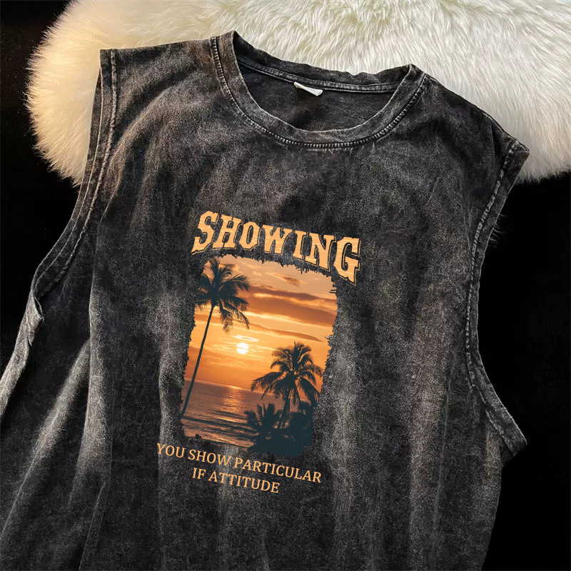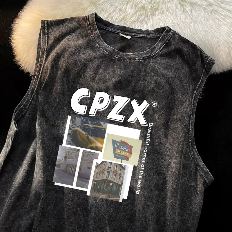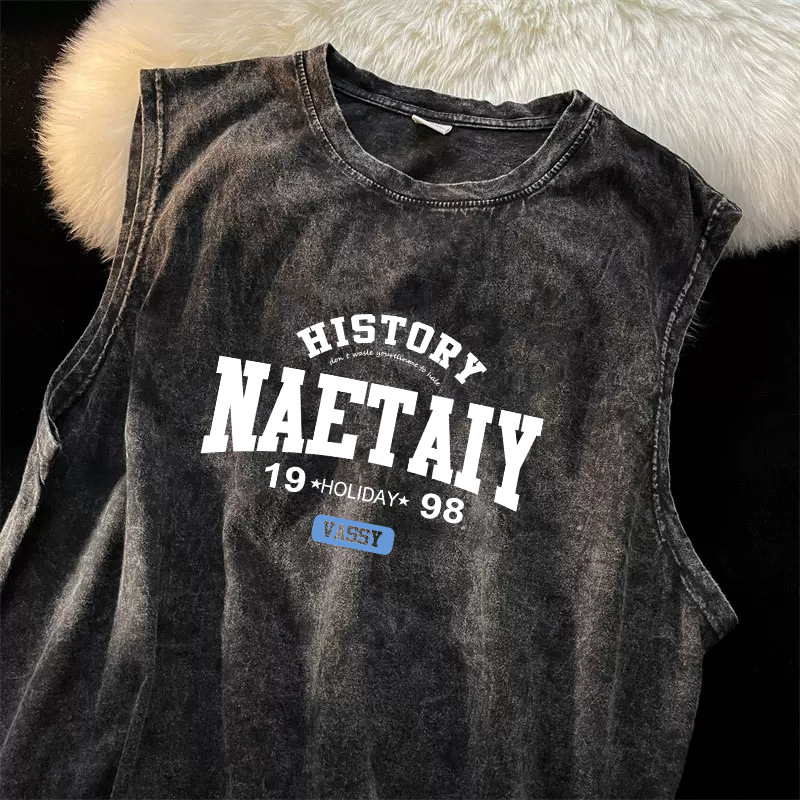 水洗背心男夏季ins潮牌港风无袖t恤潮流百搭运动坎肩上衣情侣装女