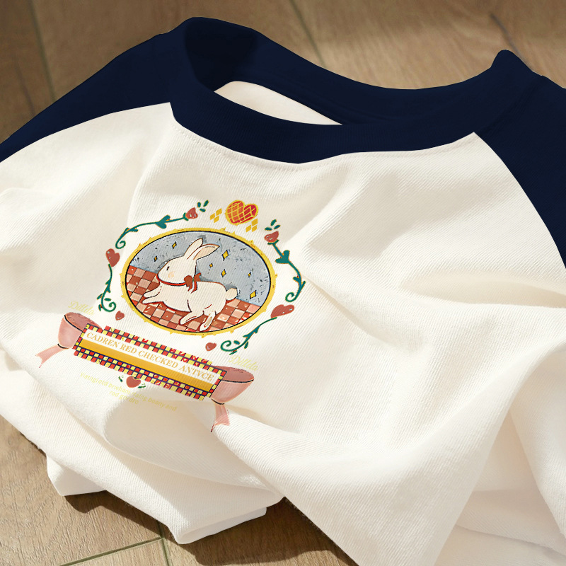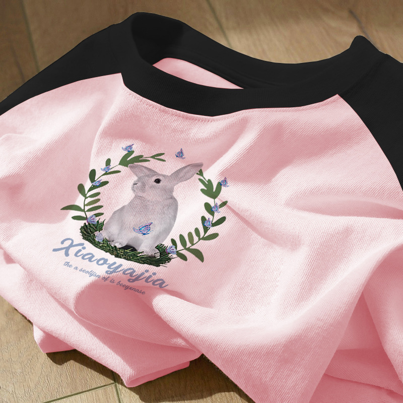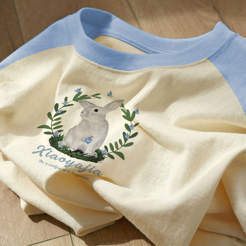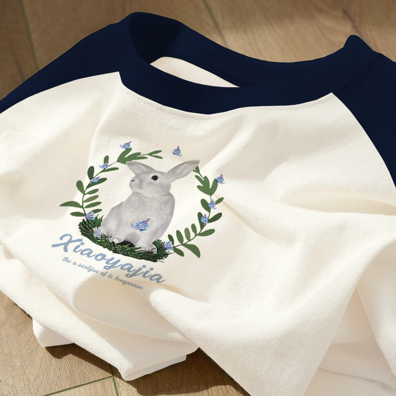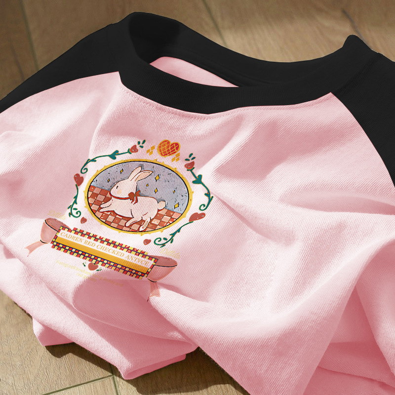 纯棉插肩袖t恤女短袖夏季宽松体恤高级感拼接撞色上衣年新款