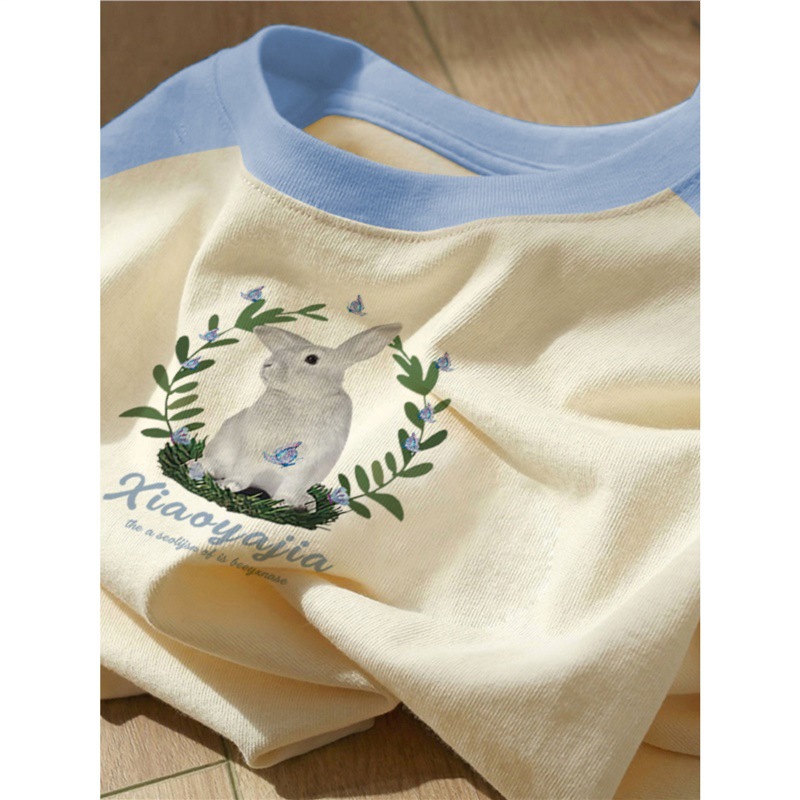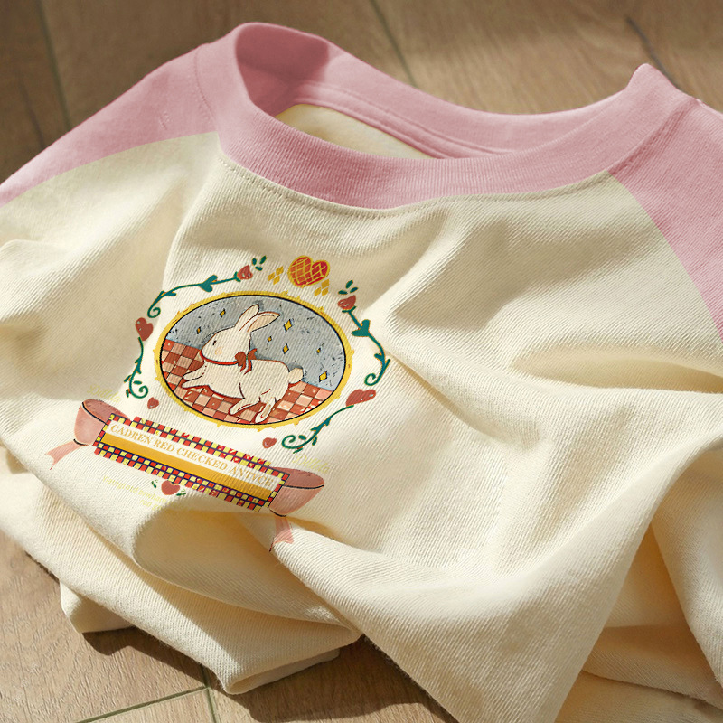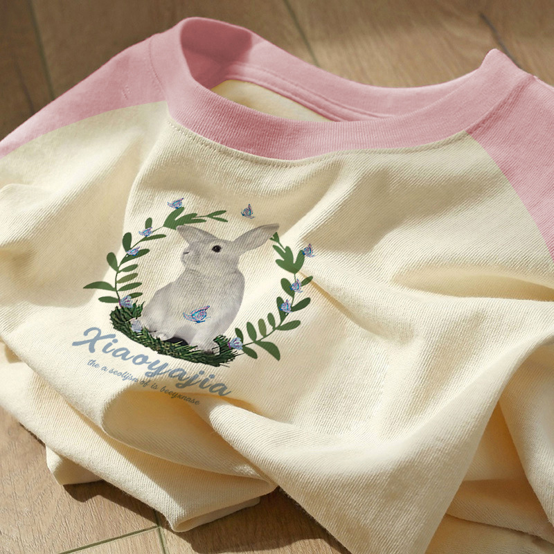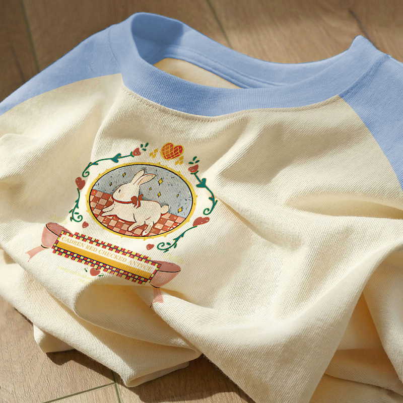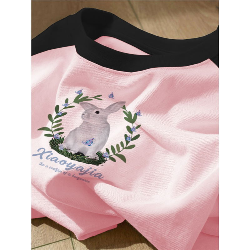 纯棉插肩袖t恤女短袖夏季宽松体恤高级感拼接撞色上衣年新款