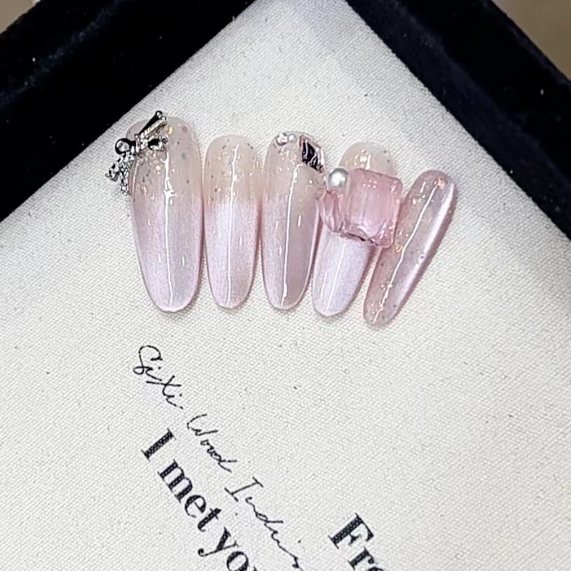 奈姿纯手工光疗穿戴甲夏夜微凉批发成品重复使用美甲贴片可拆卸