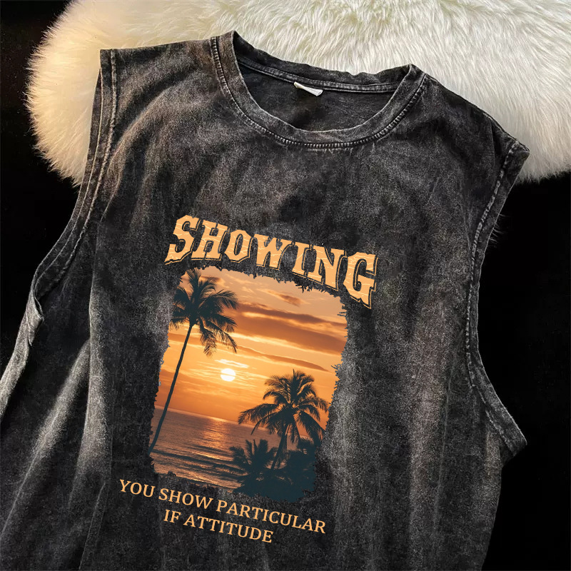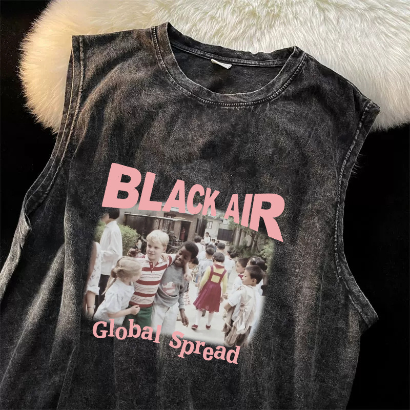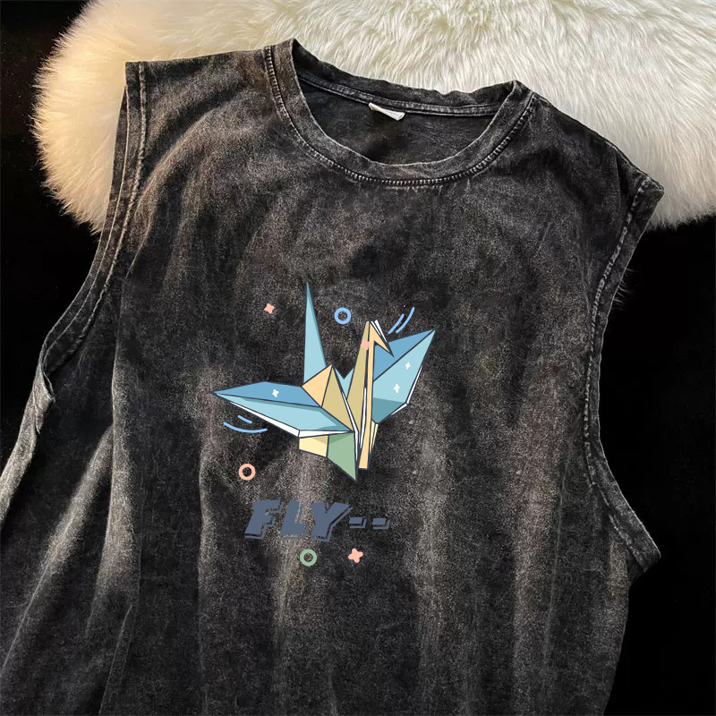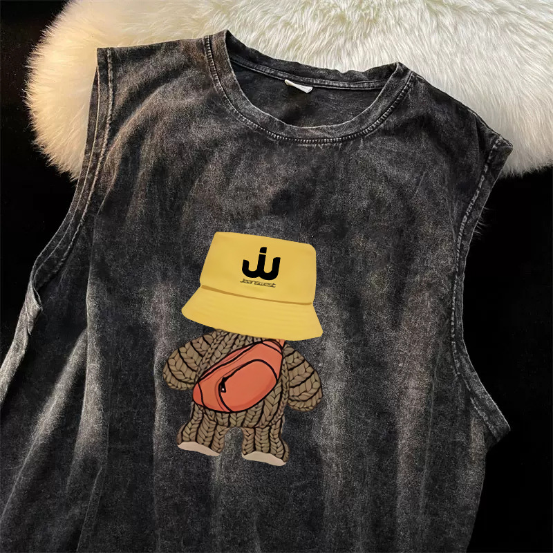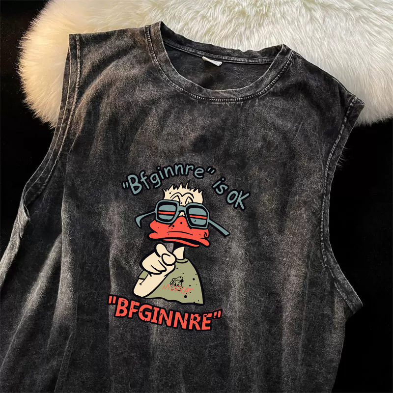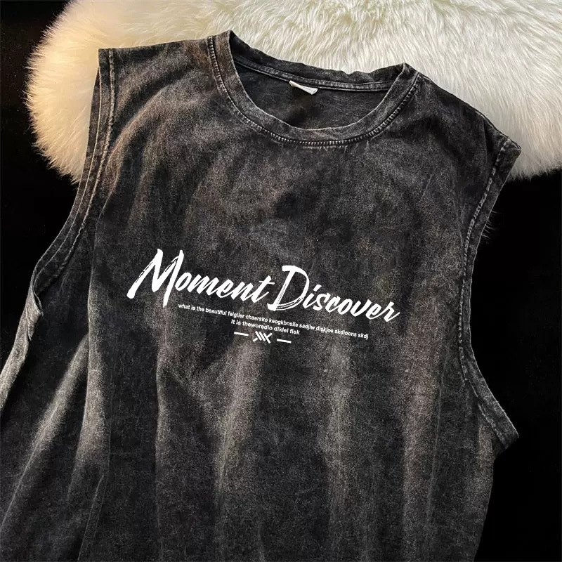 水洗做旧背心男夏季薄款美式高街无袖t恤青年百搭纯棉松运动坎肩
