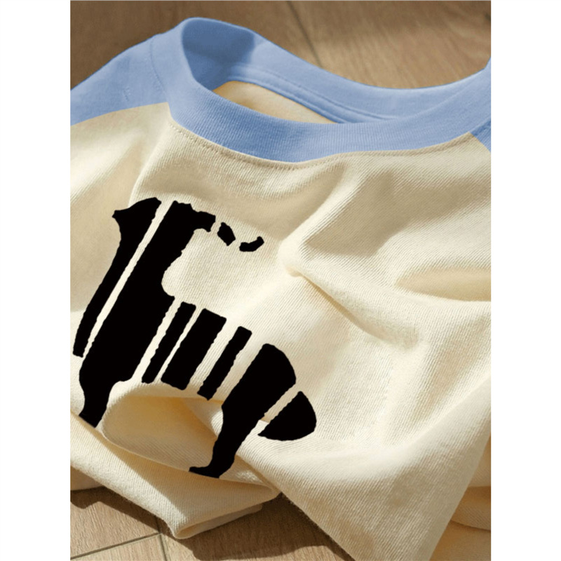 欧货纯棉短袖t恤女夏季拼色小众设计感圆领修身显瘦上衣洋气遮肉