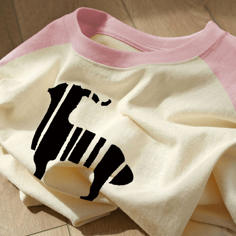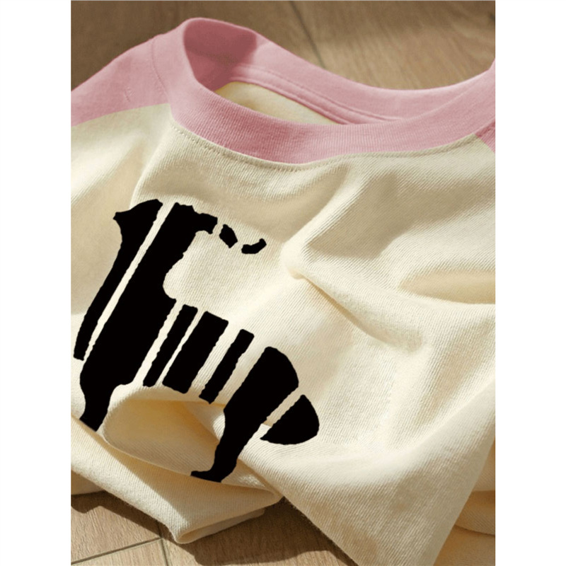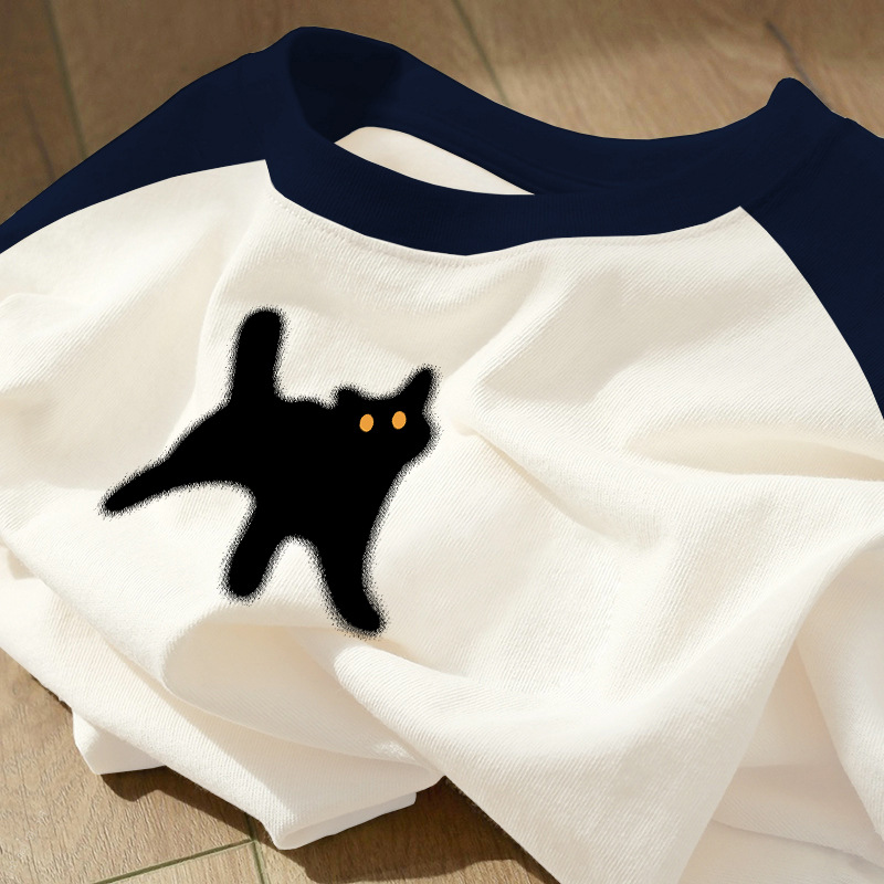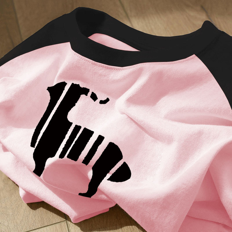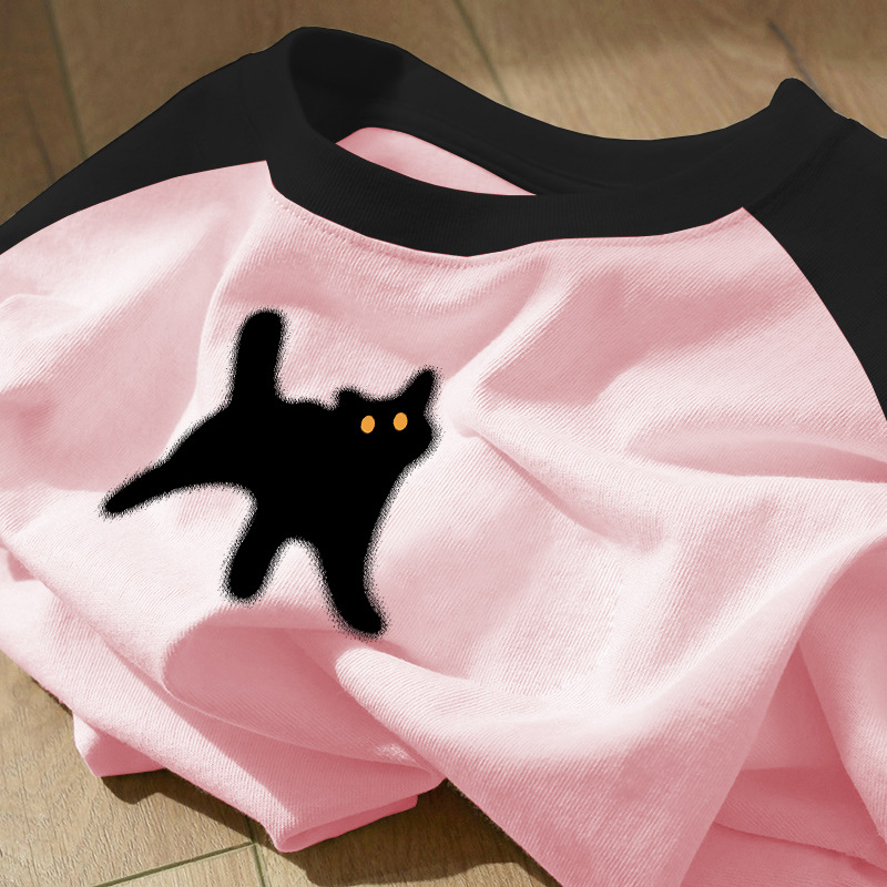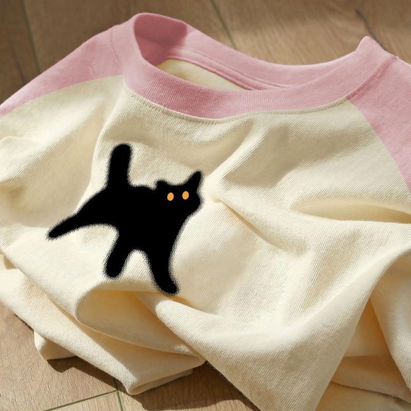 新款体恤上衣夏季超火小个子纯棉宽松黑拼粉插肩短袖t恤女款