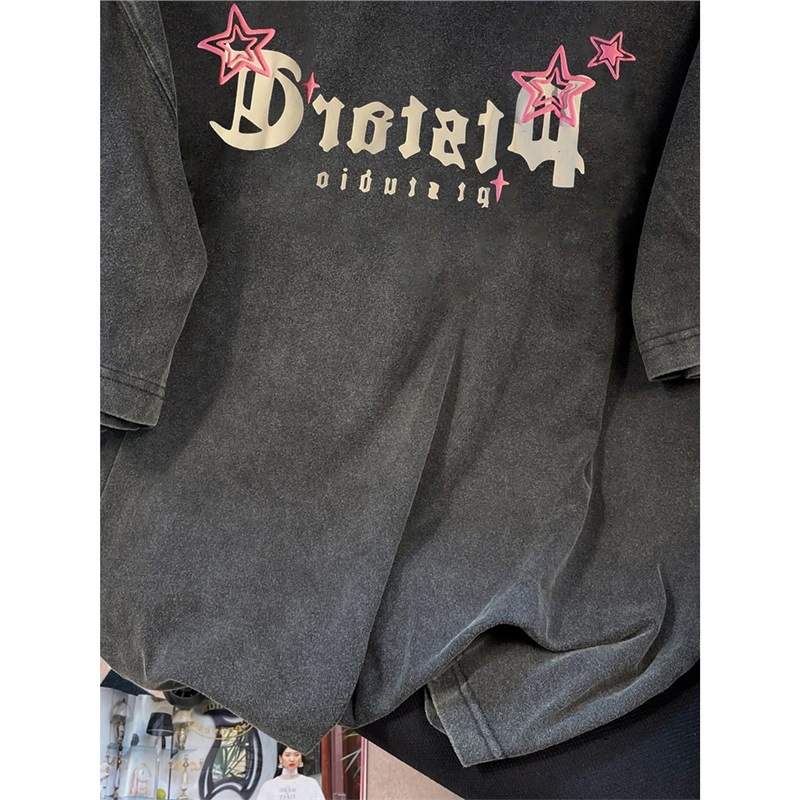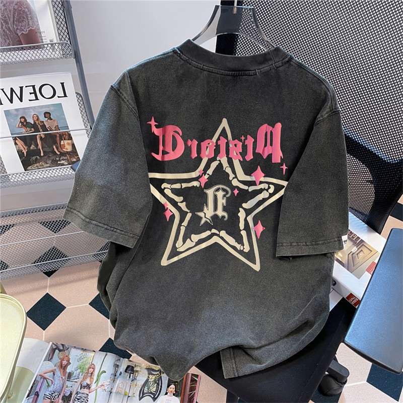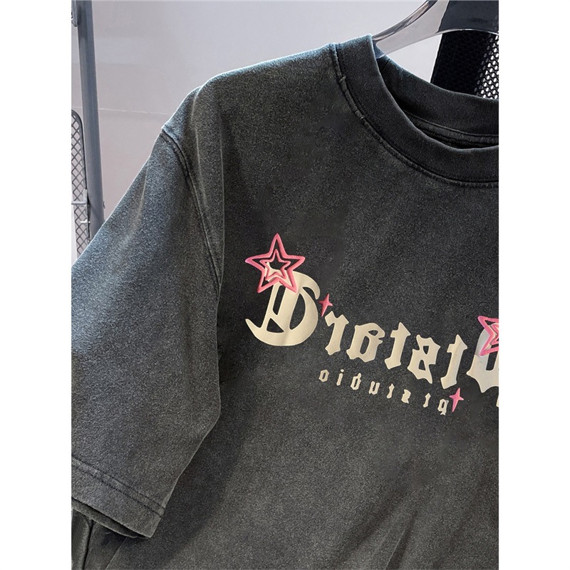 重磅潮牌水洗做旧圆领短袖T恤女夏季欧美高街hiphop纯棉情侣上衣
