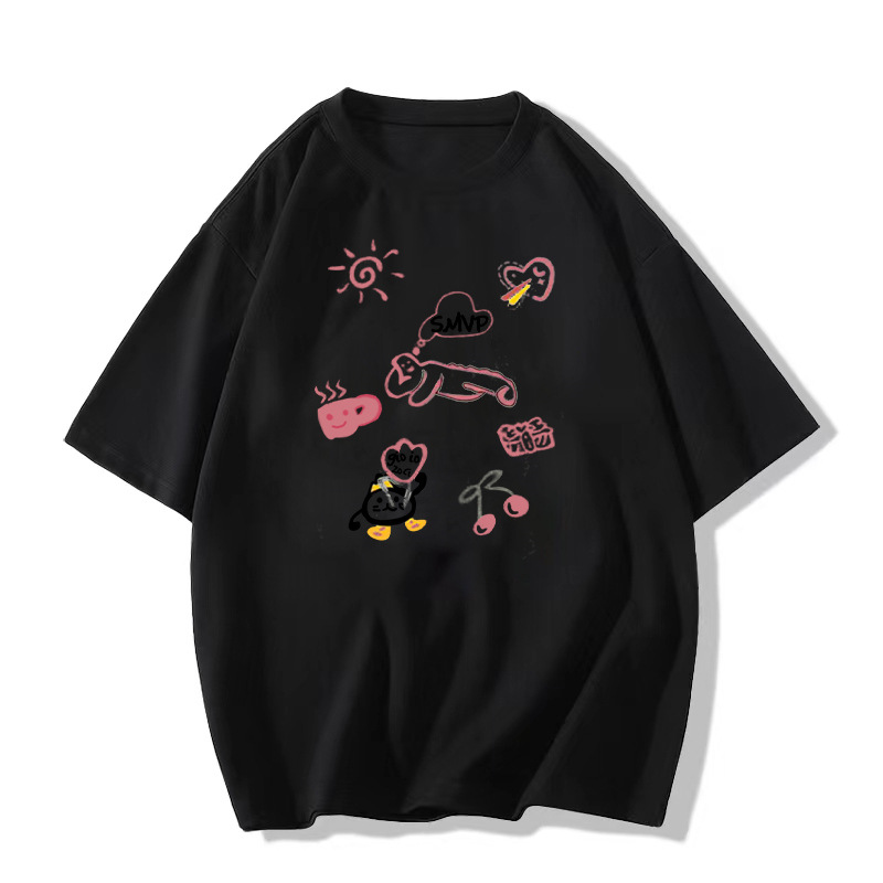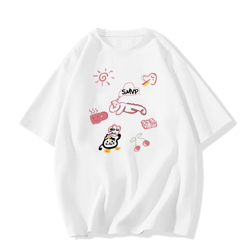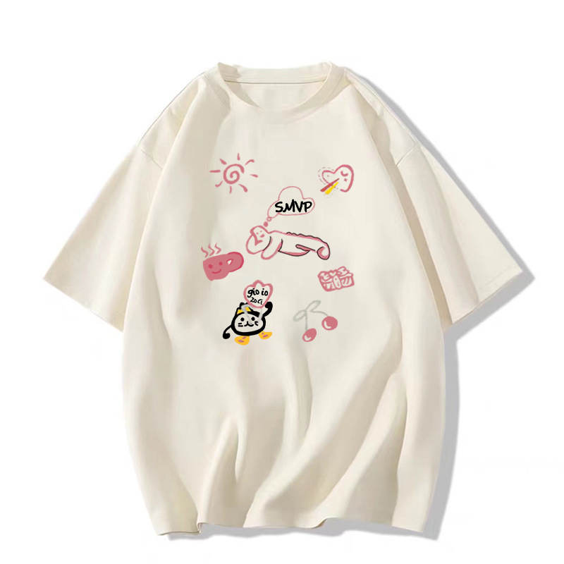 美式宽松白色圆领短袖上衣女新款星星字母印花情侣纯棉t恤