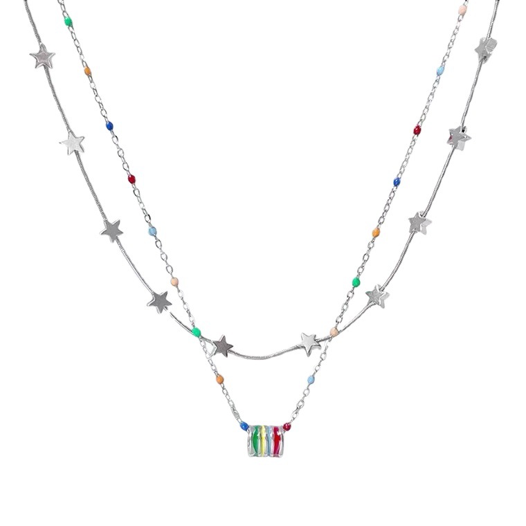 彩色细款叠搭项链女高级设计感小众ins锁骨链金属星星钛钢颈链