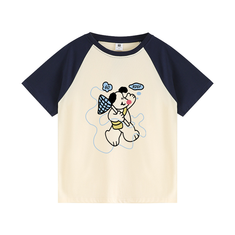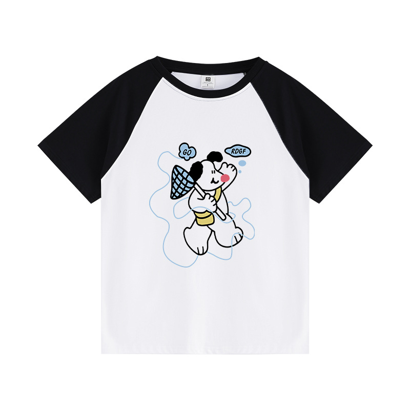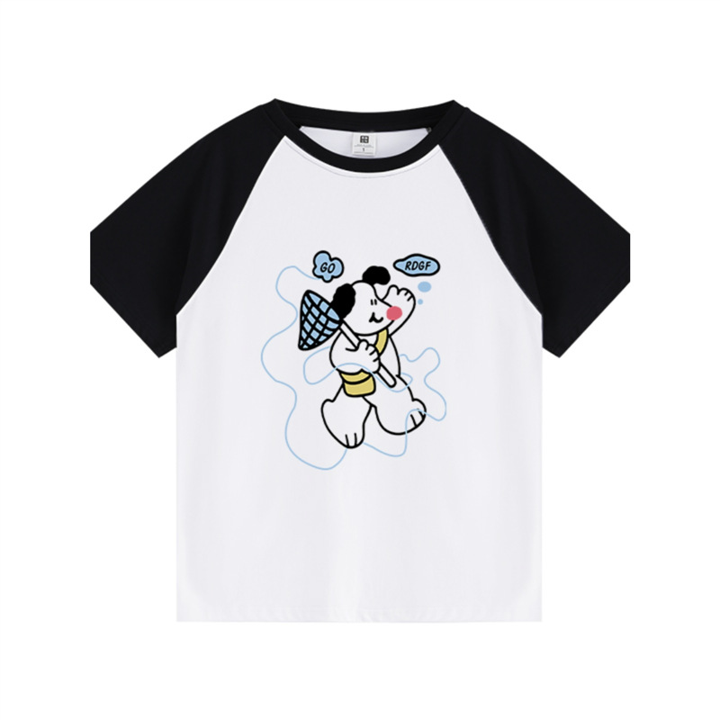 插肩短袖t恤女夏季设计感小众卡通印花宽松百搭休闲半袖上衣