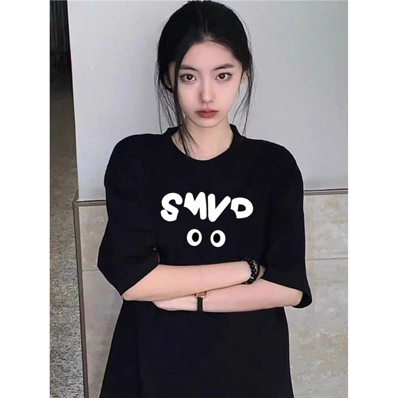 纯棉正肩黑色短袖t恤女新款夏季设计感小众美式宽松半袖上衣