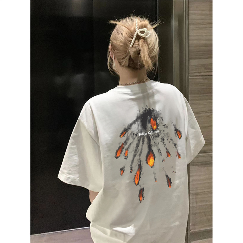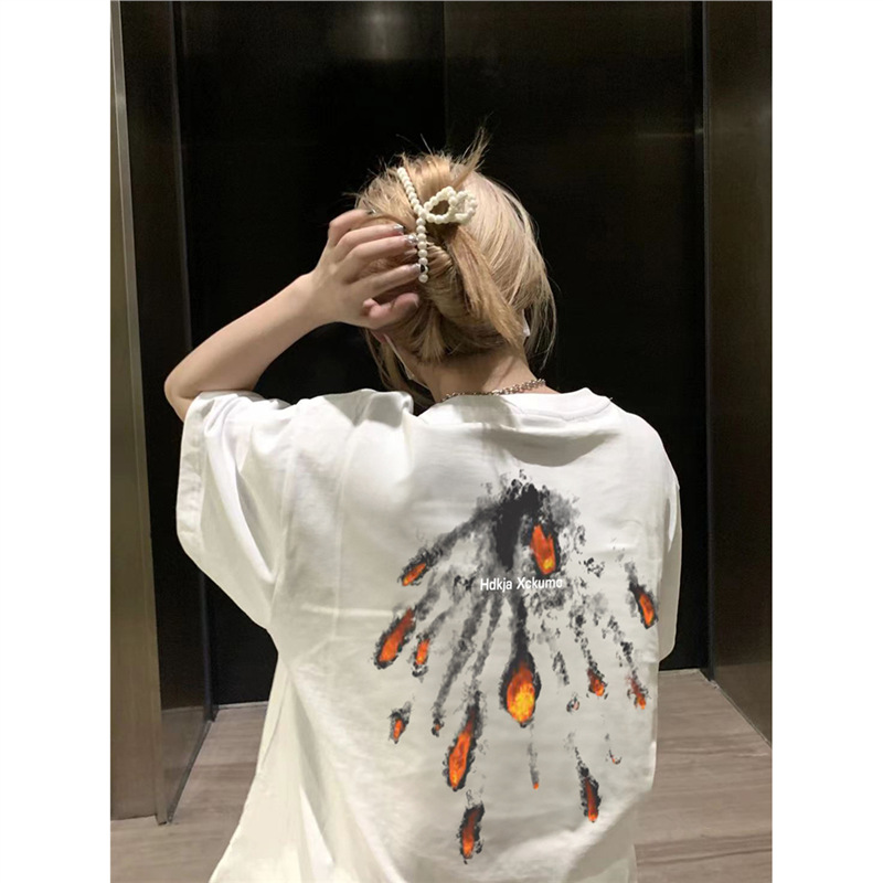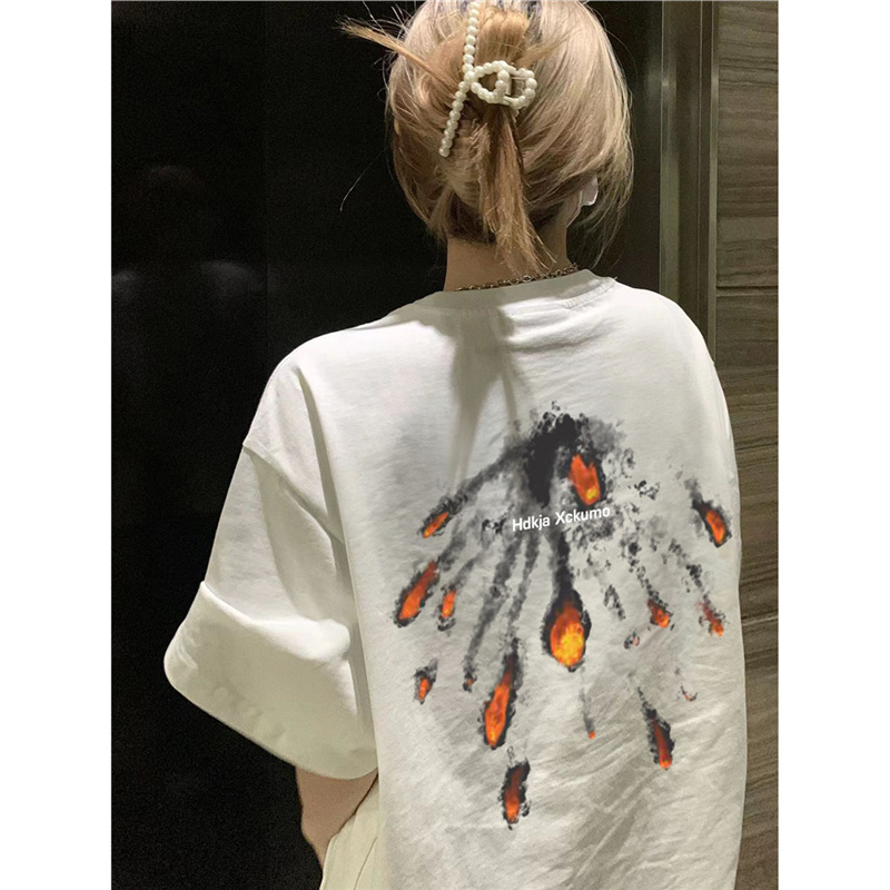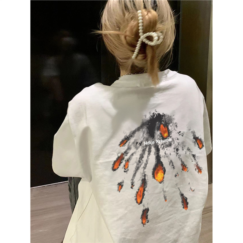 夏季纯棉白色短袖t恤女新款爆款正肩设计感美式半袖宽松上衣