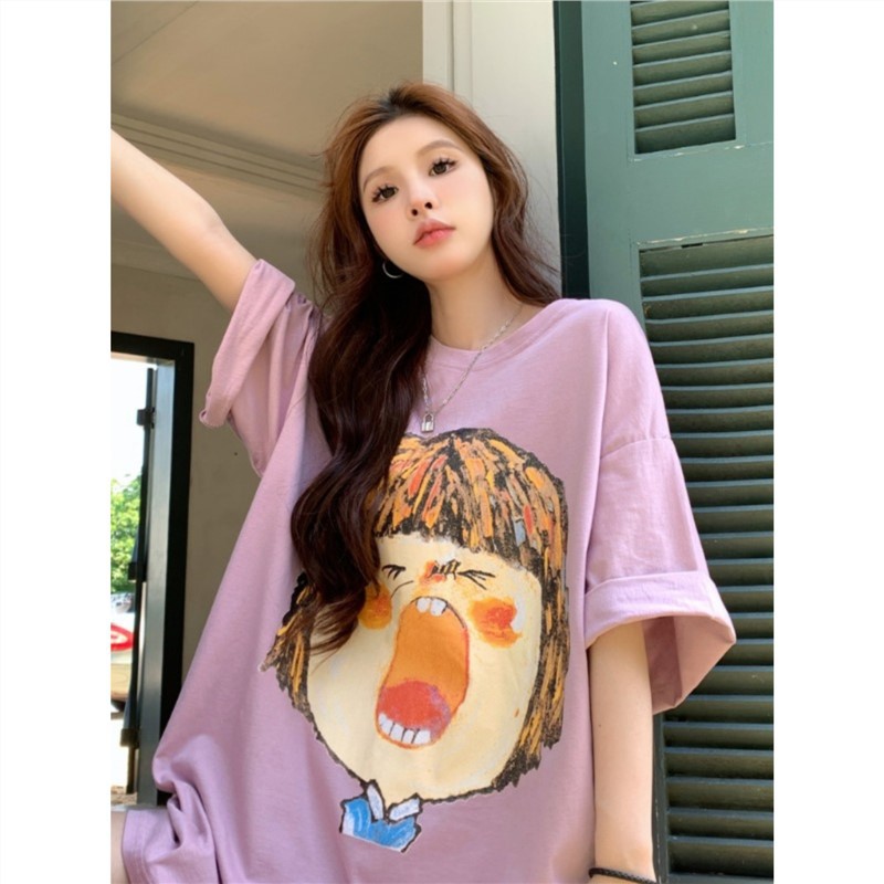 夏季新款闺蜜装卡通短袖T恤女宽松韩版学生扎染上衣服女ins潮