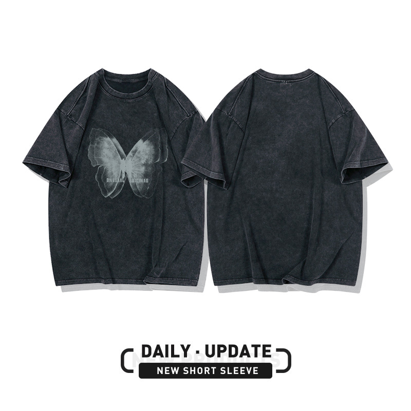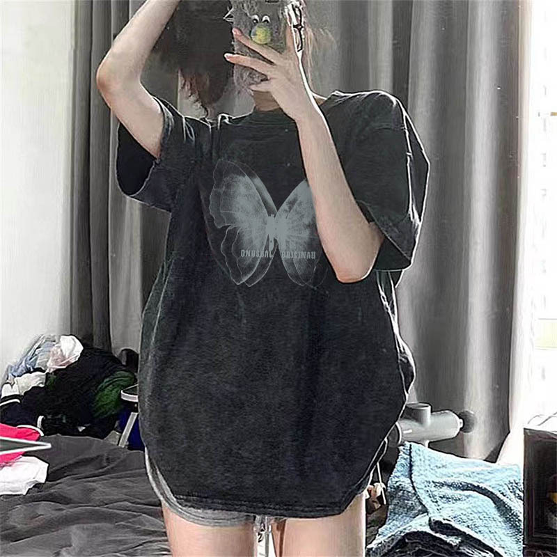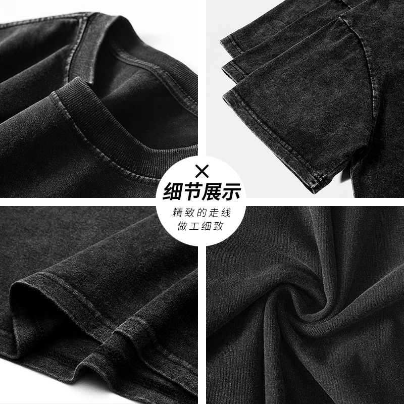 水洗做旧美式短袖t恤女夏季复古高街大码ins潮牌小众别致独特上衣